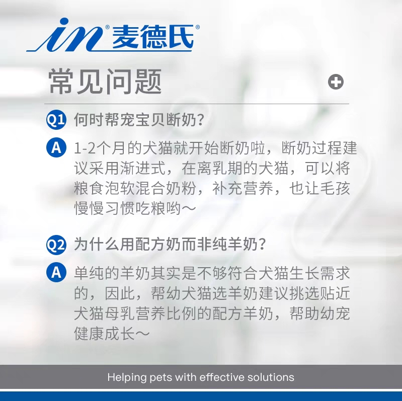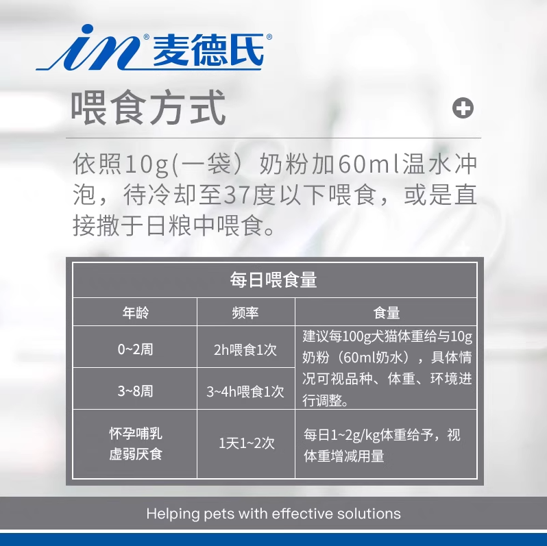 麦德氏医护亲和配方羊奶粉宠物猫狗呵护肠胃幼犬幼猫益生菌in+vet