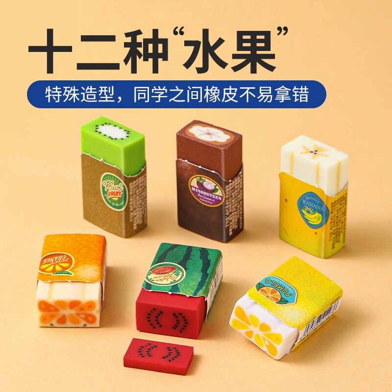 PLUS普乐士水果橡皮火龙果榴莲山竹柚子可爱学生橡皮擦聚屑不伤纸