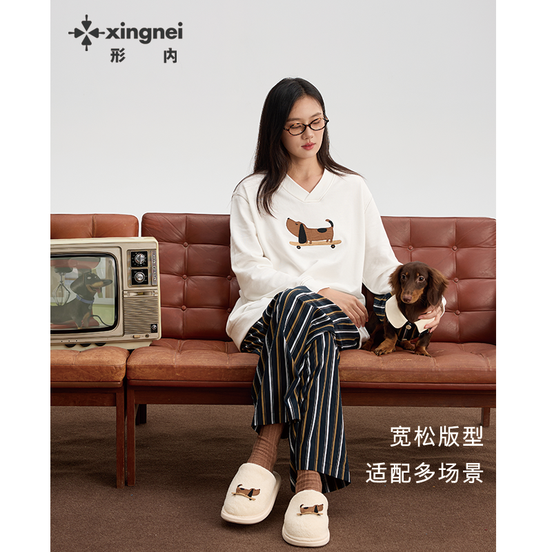 形内睡衣女套装纯棉卡通秋装2025新款秋季条纹长袖长裤亲肤家居服