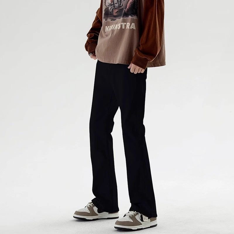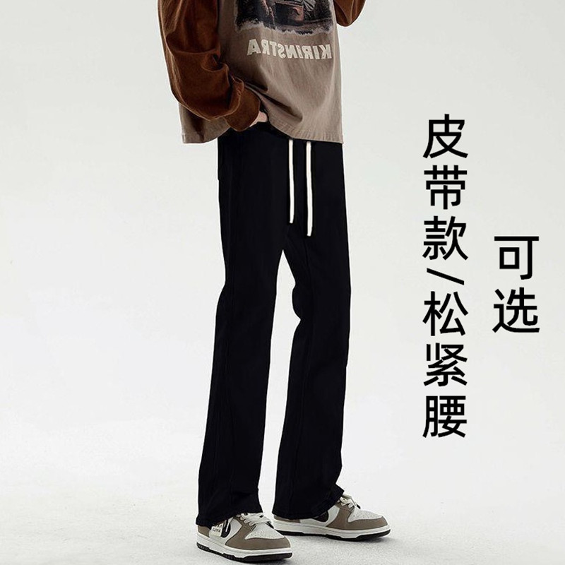 牛仔裤男秋冬加绒微喇青少年宽松直筒初中高中学生休闲帅气长裤子