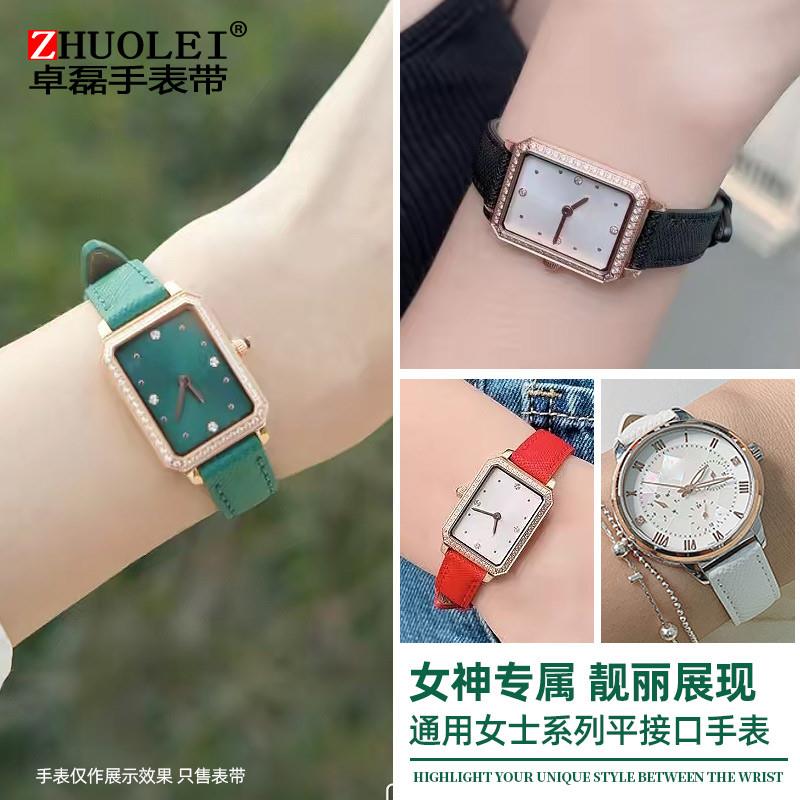 适用原厂女真皮手表带ins风小号表带适配化石罗西尼劳士顿101214m