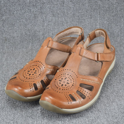 外贸原单真皮大码平底凉鞋女平跟厚底圆头复古一字扣带包头罗马鞋