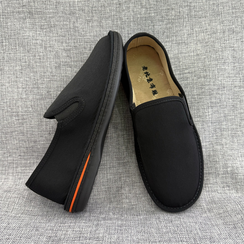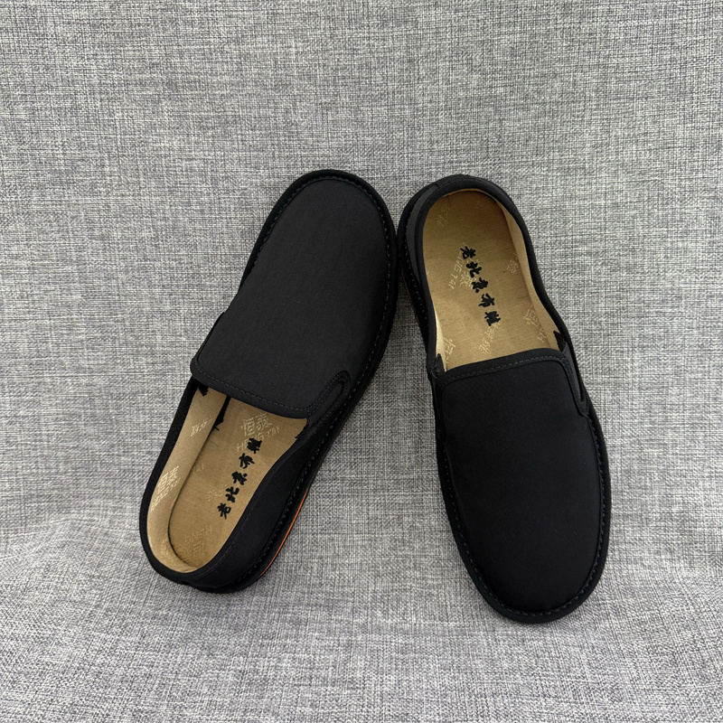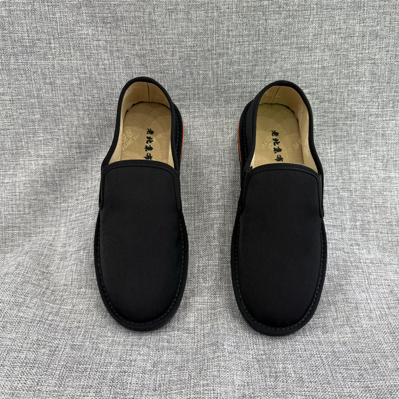 老北京春秋手工透气防滑软底舒适休闲一脚蹬懒人鞋爸爸黑色男布鞋