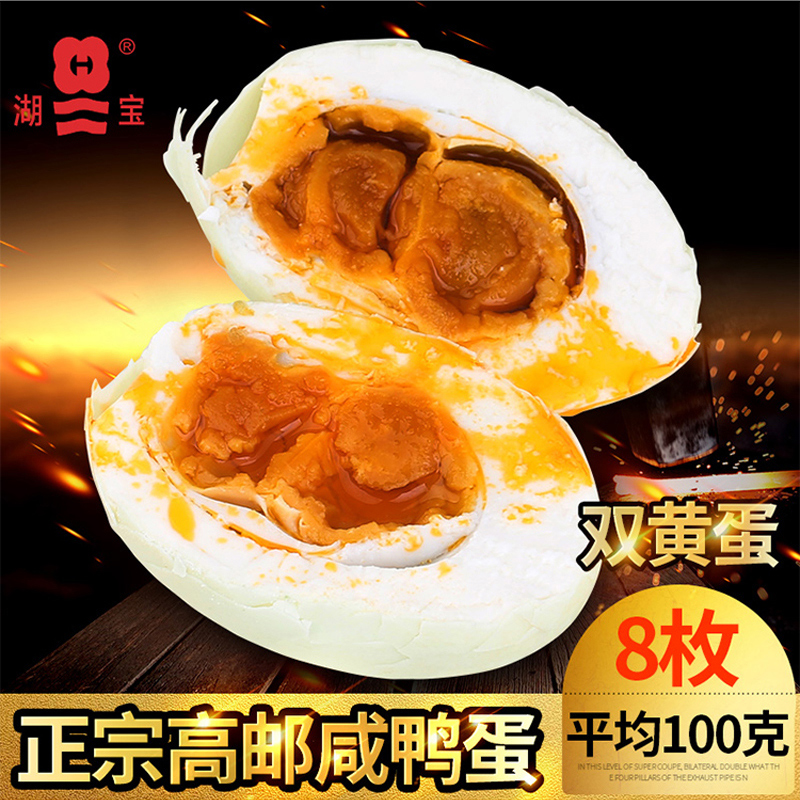 正宗高邮特产湖宝双黄咸鸭蛋100g8枚熟即食流油麻鸭蛋年货礼盒