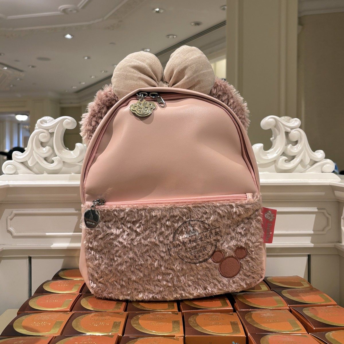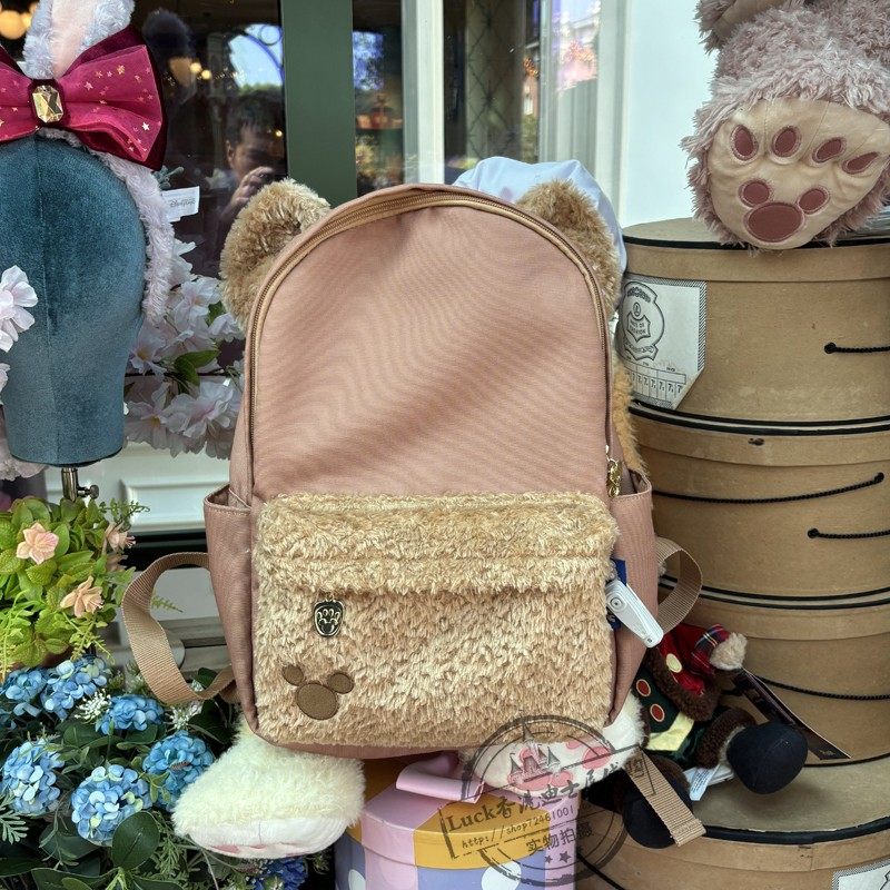 香港迪士尼乐园玫玫PU饼饼贝儿达菲托尼书包卡通可爱毛绒双肩背包