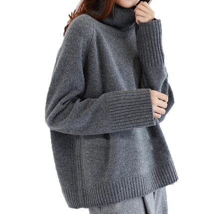 高领100%羊毛针织长袖宽松慵懒百搭休闲上衣毛衣女25冬季新款