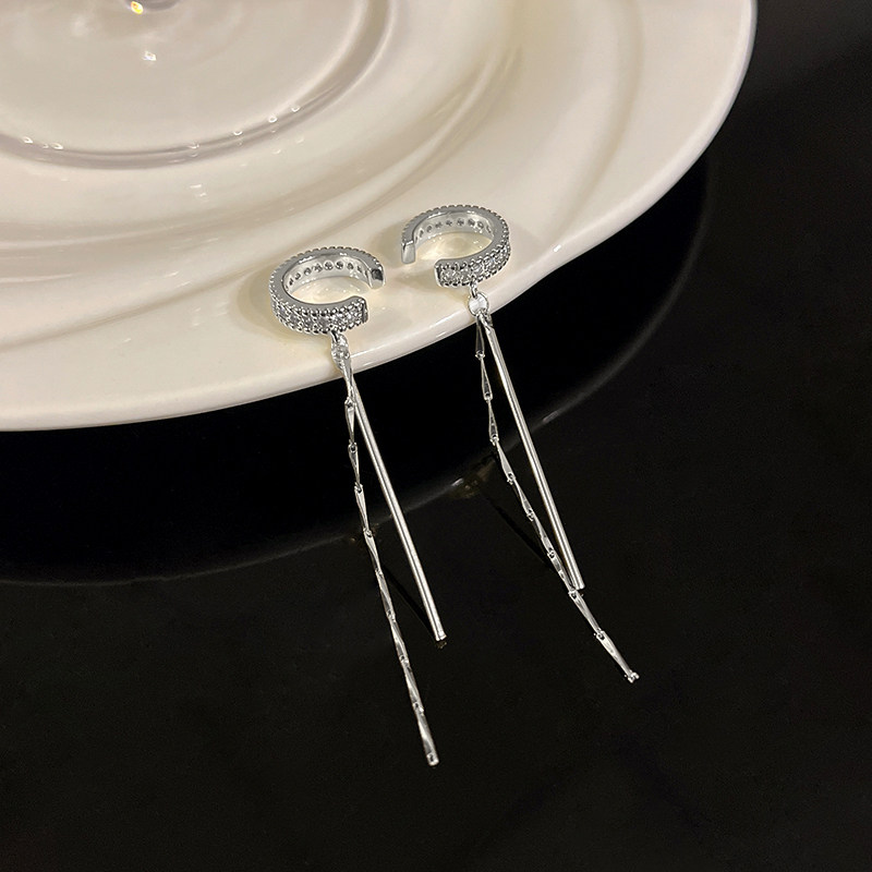 银色流苏耳夹女无耳洞轻奢