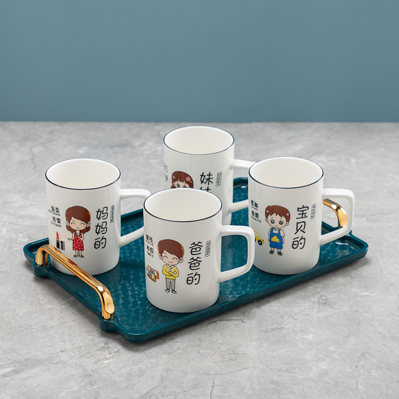 亲子水具套装客厅水杯 配架冷水壶开水杯带托盘 家用识别杯小清新