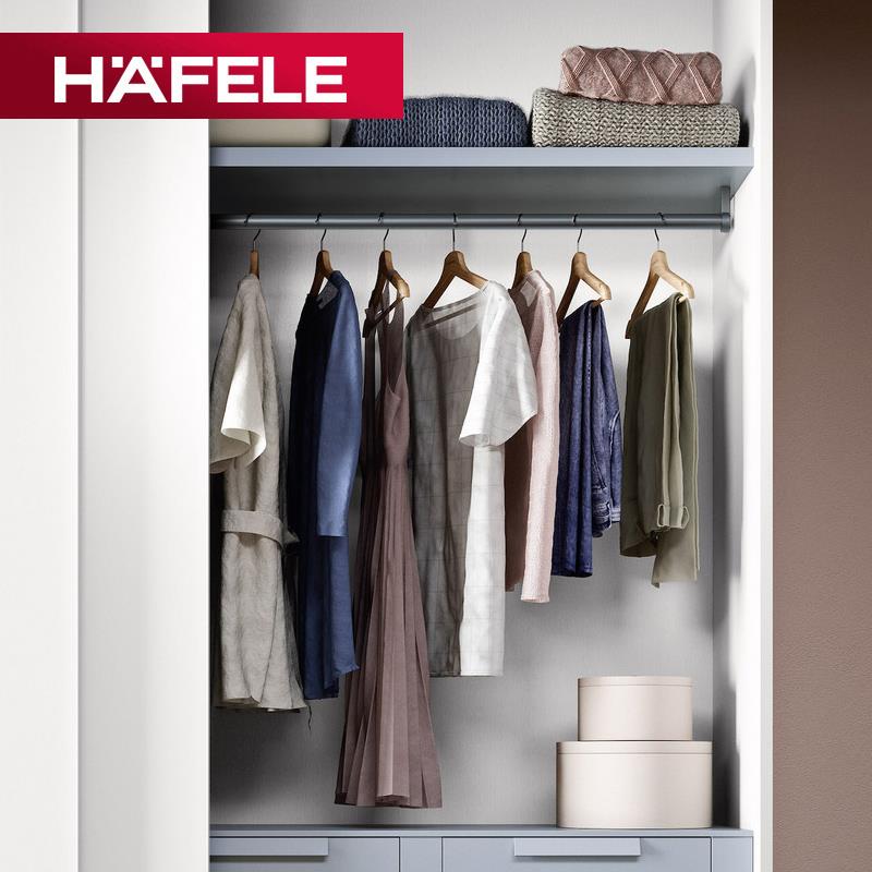德国海福乐HAFELE衣柜防滑静音条圆管衣杆侧装顶装灰色挂衣杆横杆