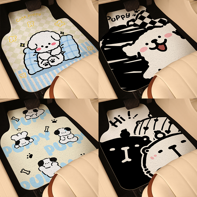 卡通小狗汽车专用脚垫女生单片丝圈通用地毯防滑耐脏车垫脚踩垫