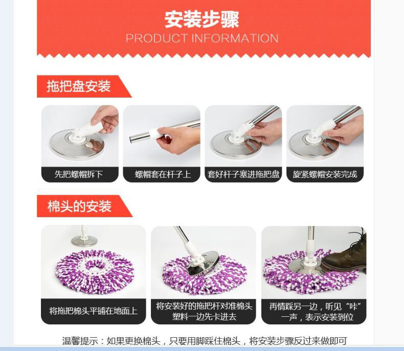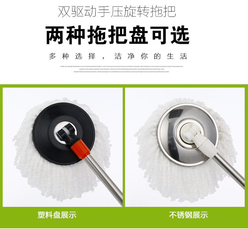 拖把杆手压式自动不锈钢加粗旋转拖把头好神拖通用替换配件墩布杆