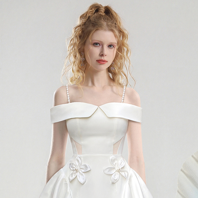 茬客名媛风一字肩连衣裙2025夏季新款立体花高级感荷叶边抹胸裙