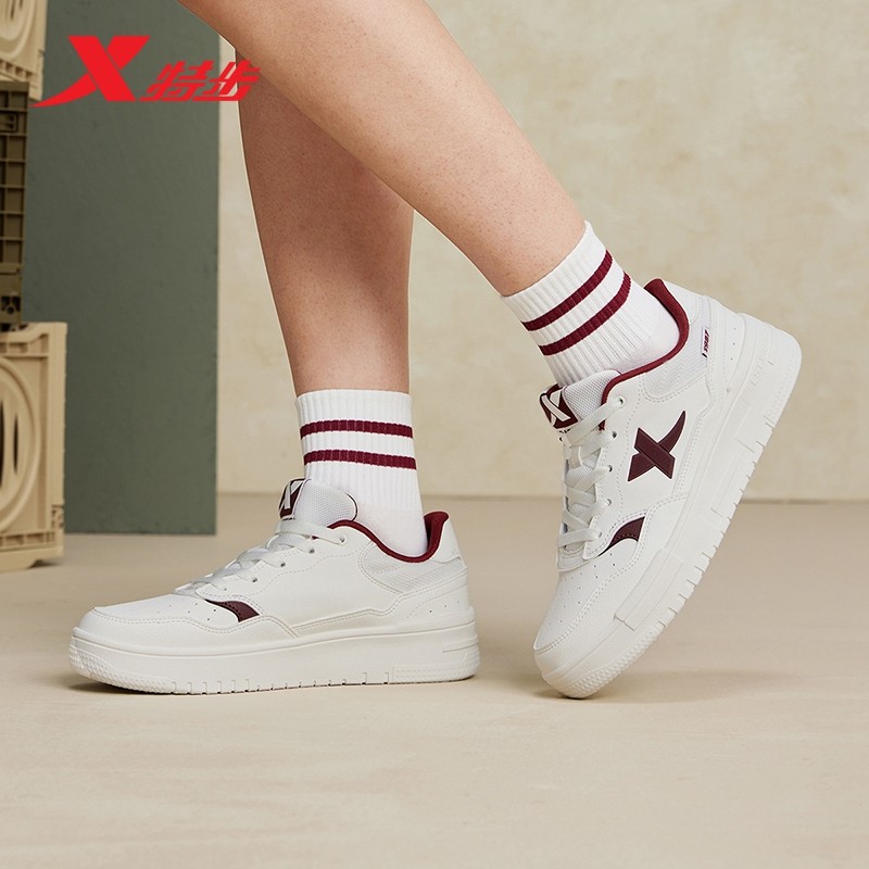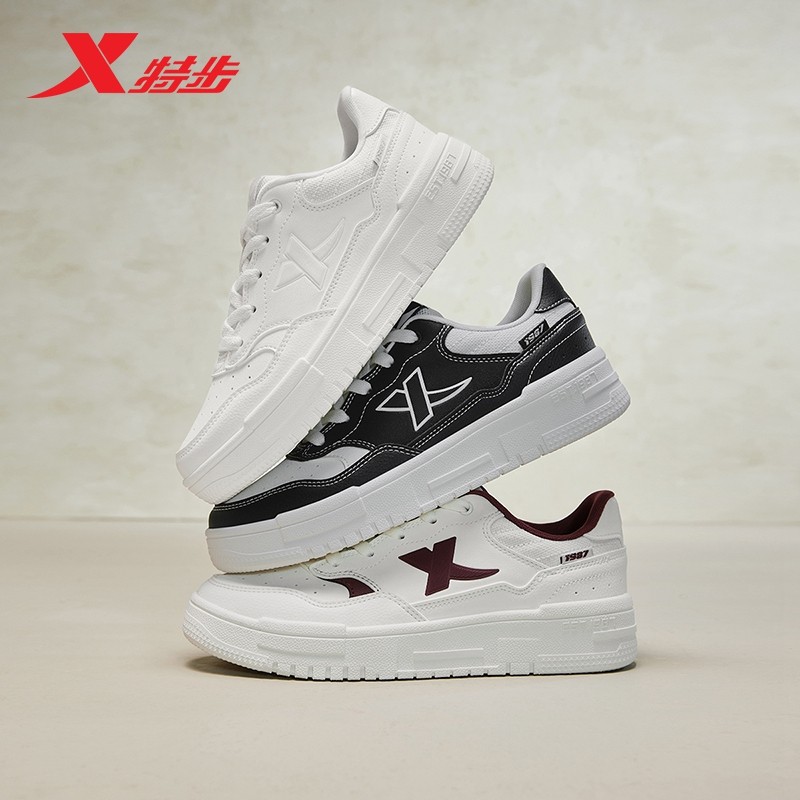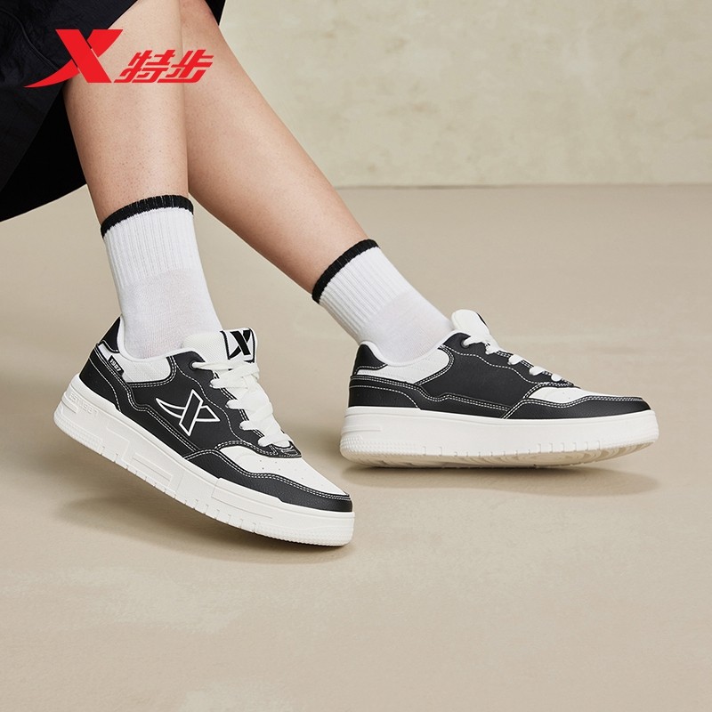 特步板鞋女鞋2025春夏新款休闲运动鞋空军一号小白鞋情侣款滑板鞋