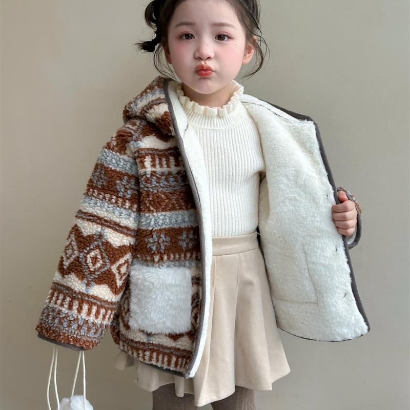 女童冬季新款韩版连帽外套儿童加绒加厚羊羔毛棉衣女宝宝保暖冬装