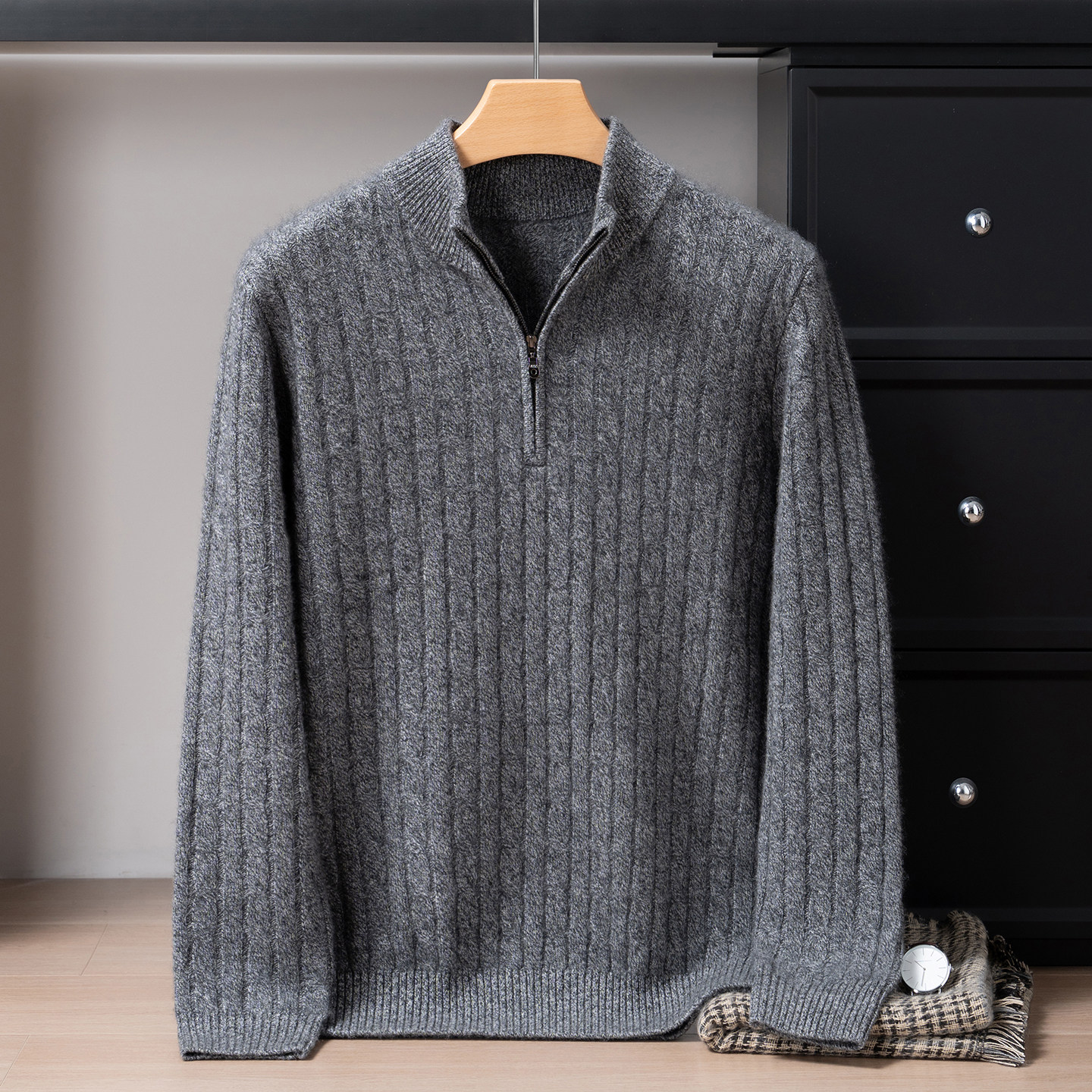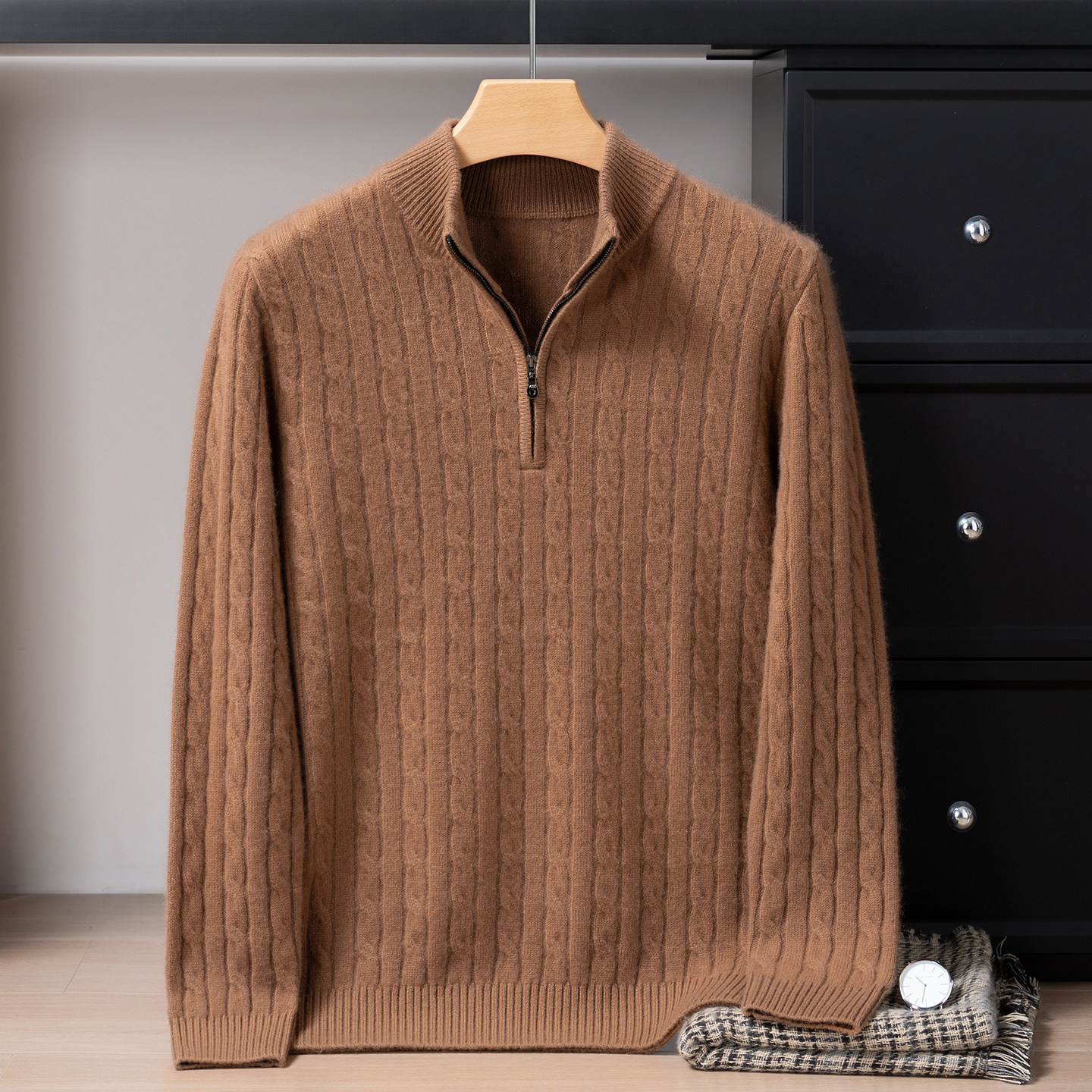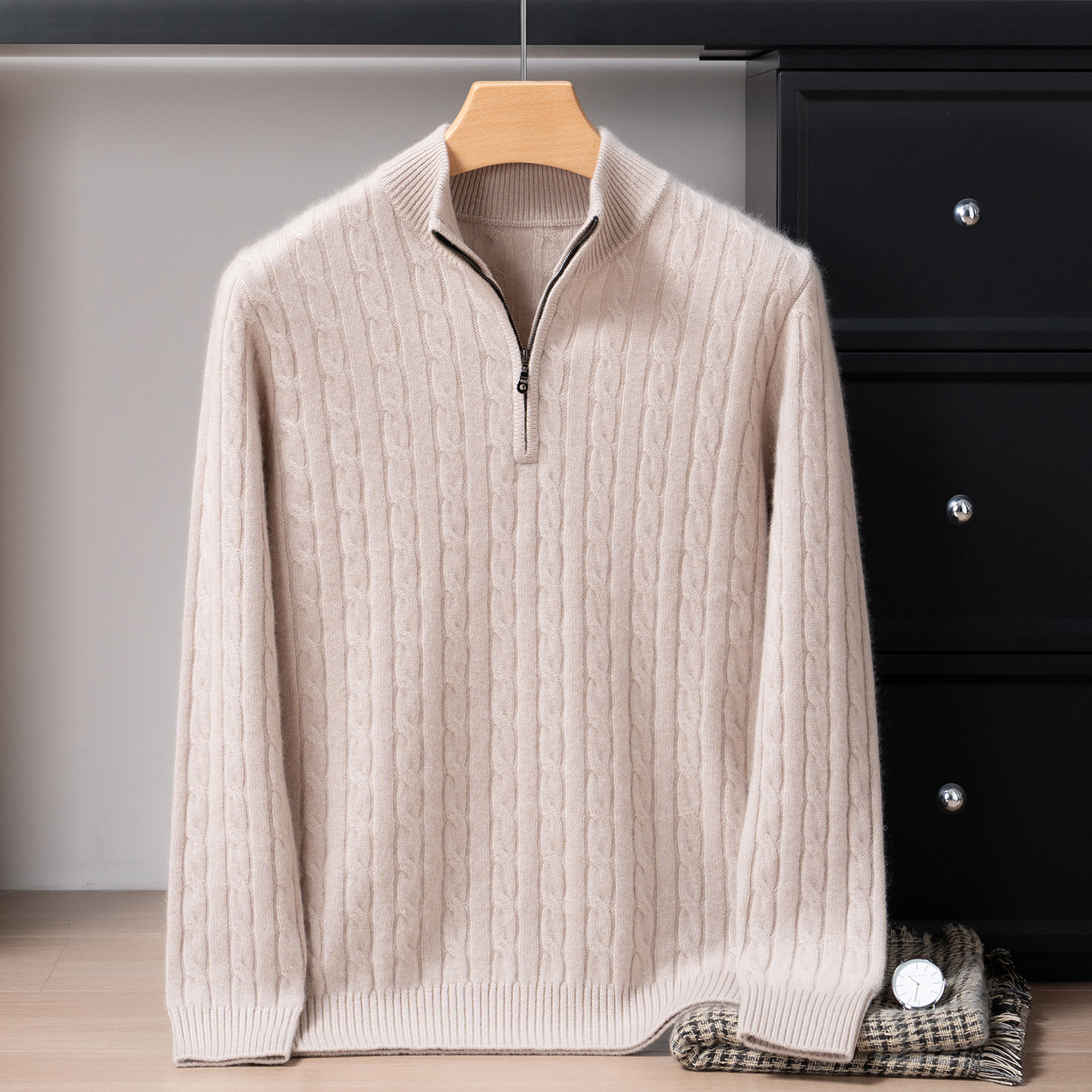 康赛妮~七针加厚扭花100%纯羊绒衫男半拉链立领毛衣轻奢极简风