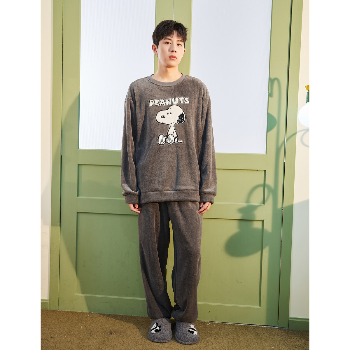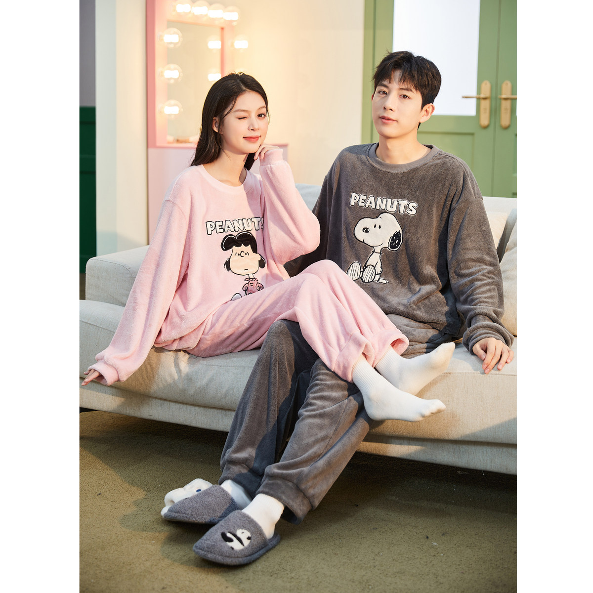 唐狮情侣睡衣女史努比联名加厚可外穿珊瑚绒套装家居服秋TD