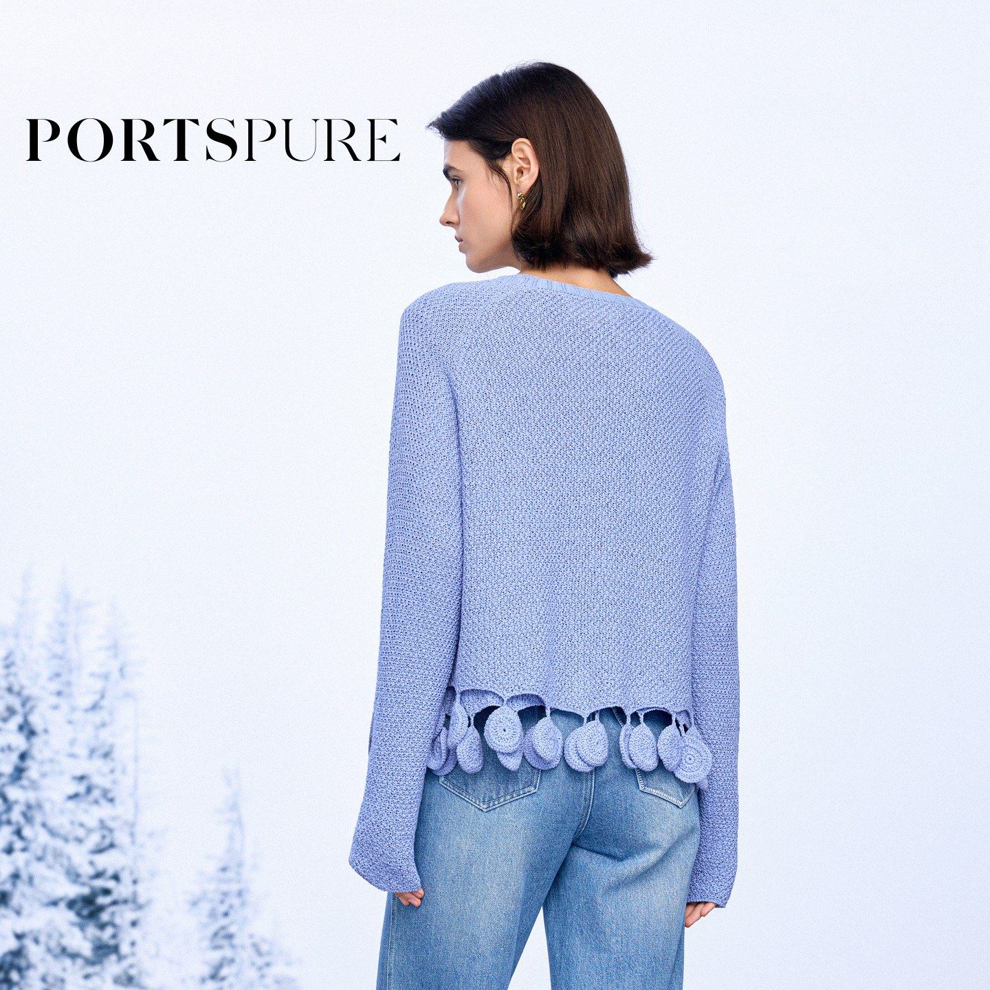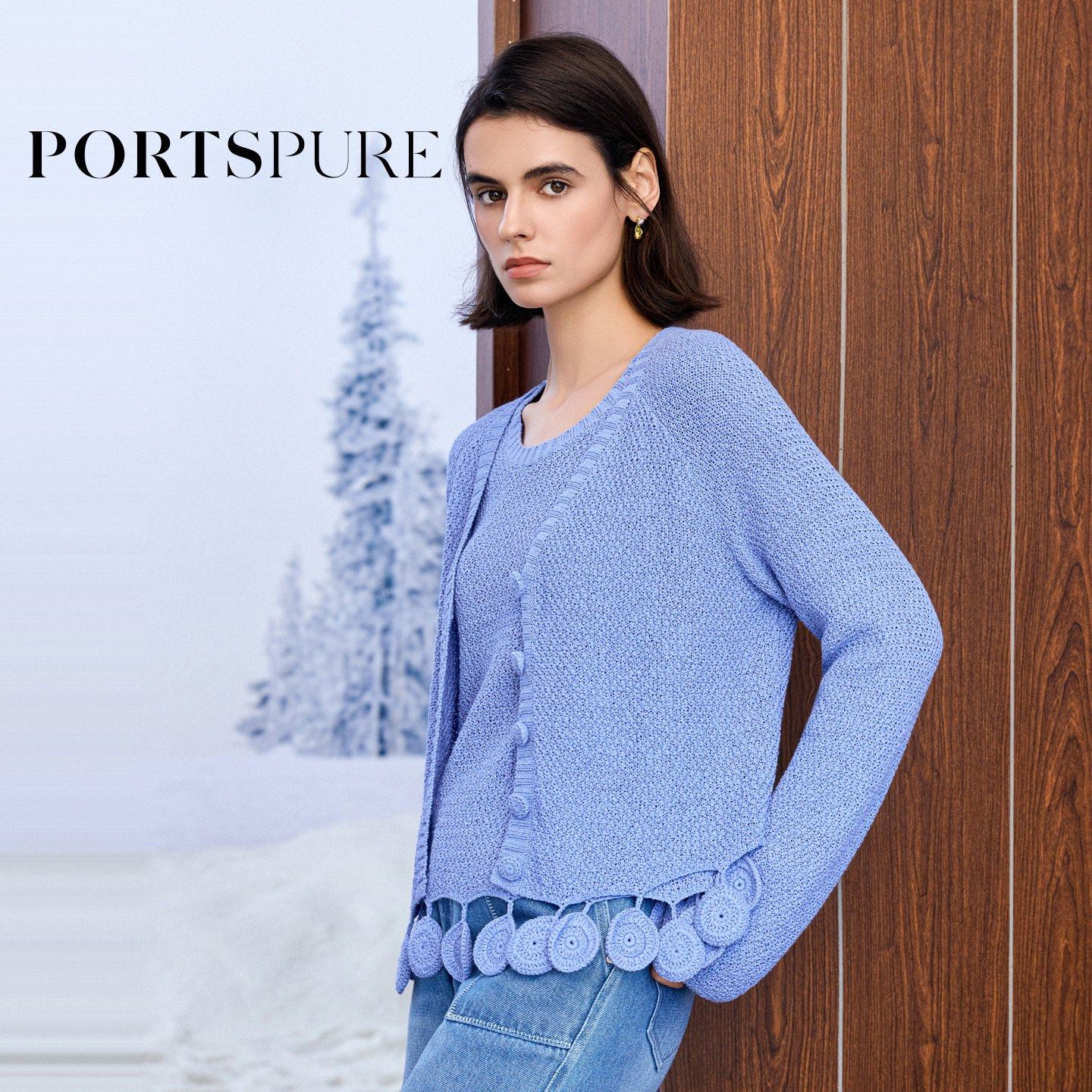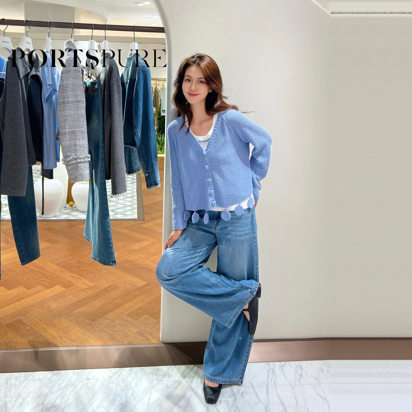 商场同款 宝姿PORTSPURE女装2025秋冬新品元气温柔V领针织开衫