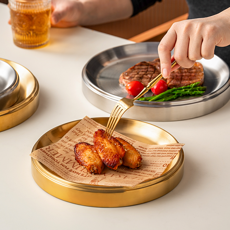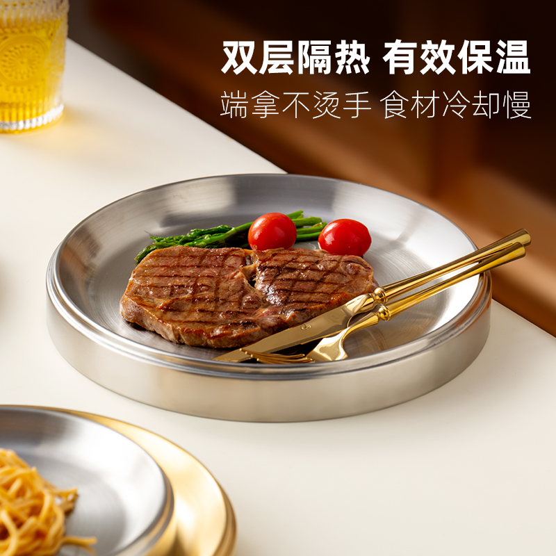 onlycook 韩式304不锈钢盘子圆形加厚餐盘户外专用牛排盘水果盘