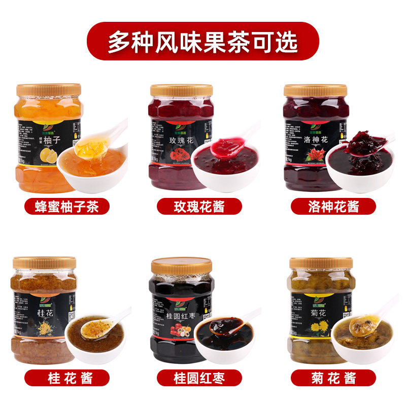 1kg蜂蜜柚子茶果酱 奶茶店桂圆红枣 桂花菊花水果茶原料果肉浓浆