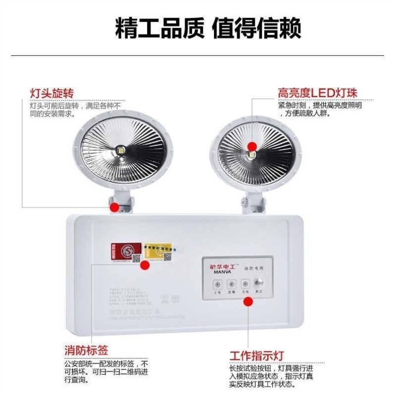 敏华消防双头应急灯双头壁灯消防应急90分钟安全出口照明疏散指示