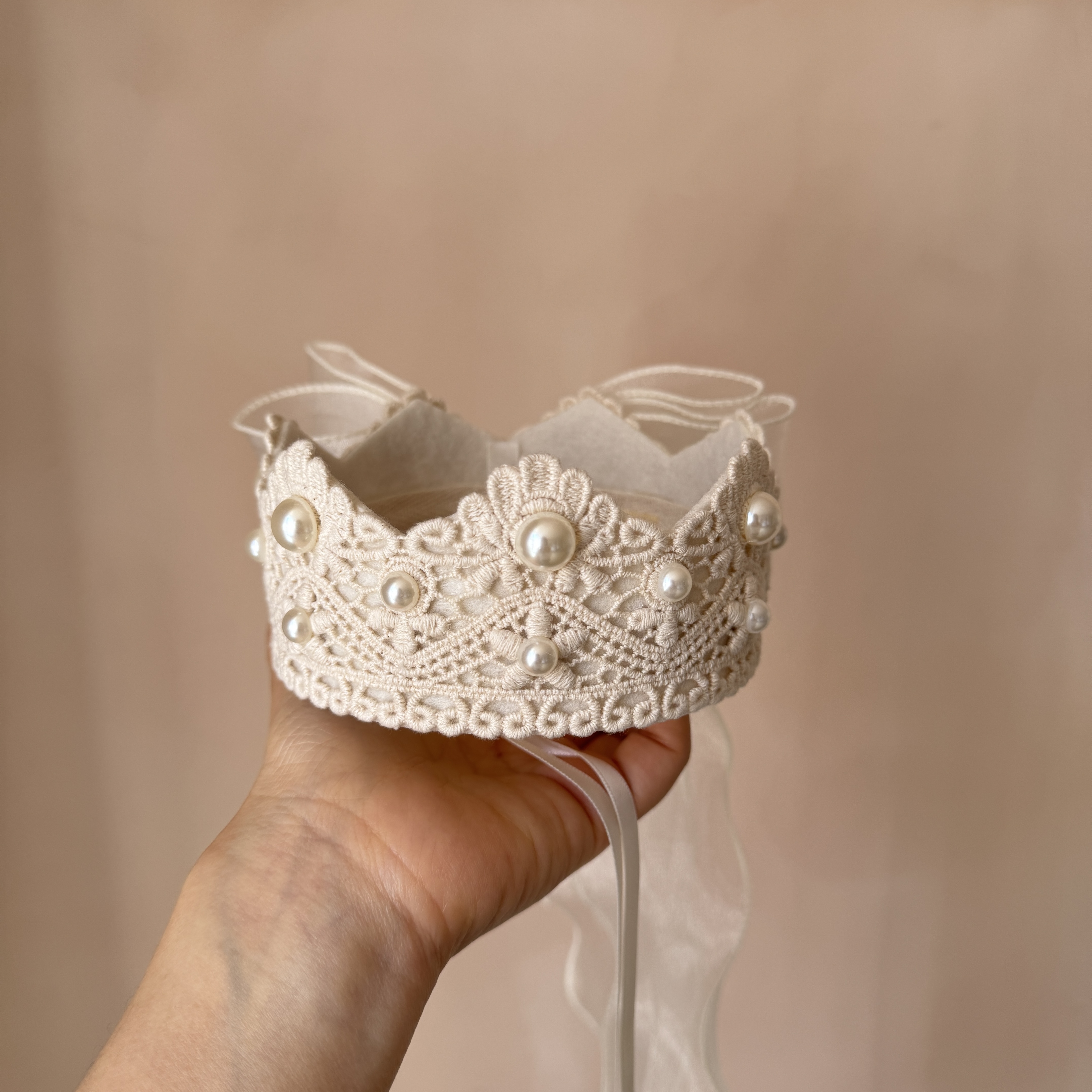 儿童生日礼帽皇冠帽子节日氛围感派对头饰发饰飘带蝴蝶结高定珍珠