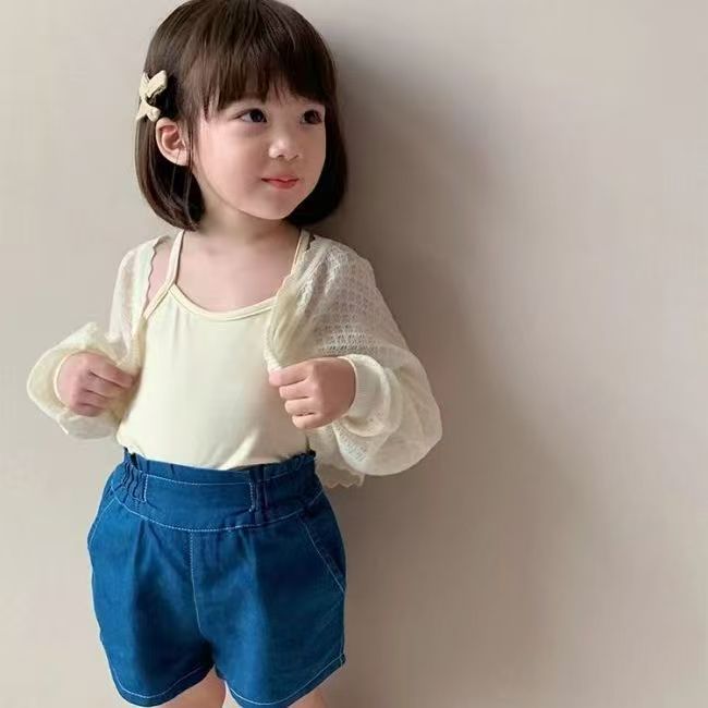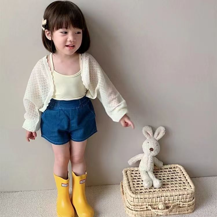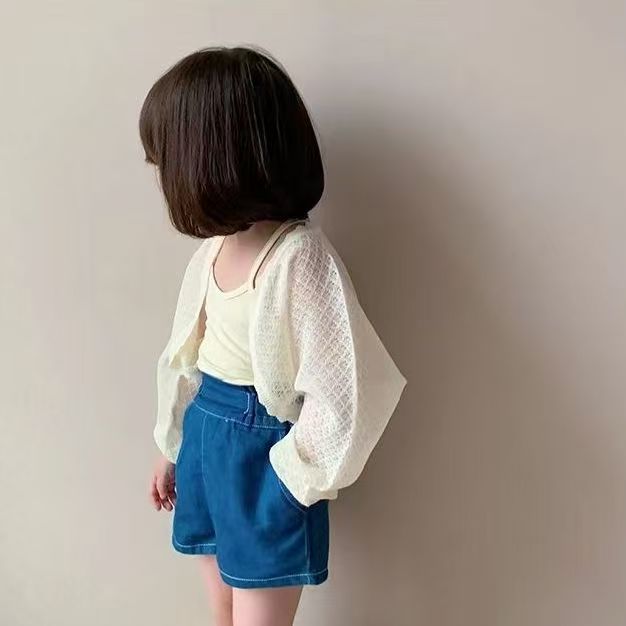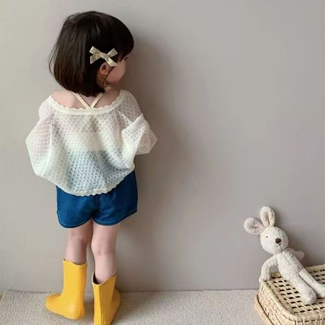 2025女童镂空针织披肩女宝宝夏季轻薄透气冰丝防晒服空调衫坎肩潮