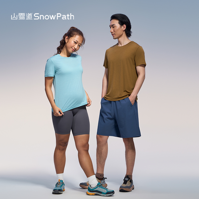 山雪道美利奴羊毛速干衣圆领男女户外跑步徒步登山排汗短袖T恤