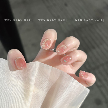 【温Baby】金鱼姬~蜜桃甜粉美甲流沙猫眼粉嫩温柔显白气质穿戴甲