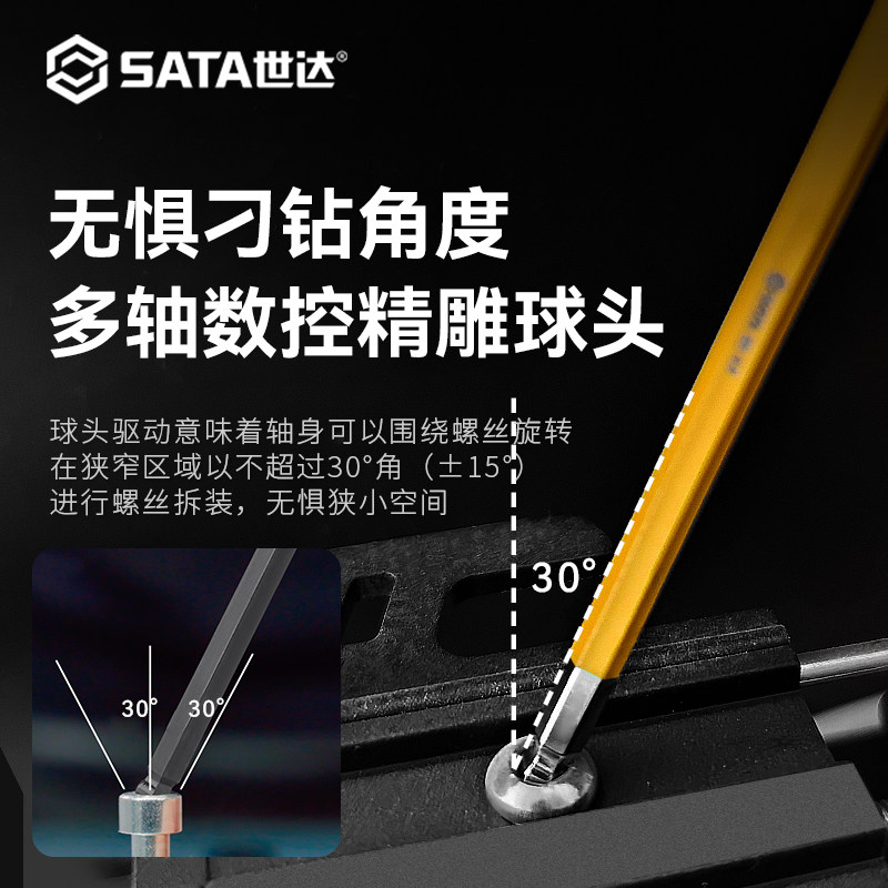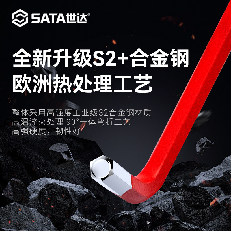 世达彩虹内六角扳手加长球头S2工业级六角匙加长六棱工具扳手套装