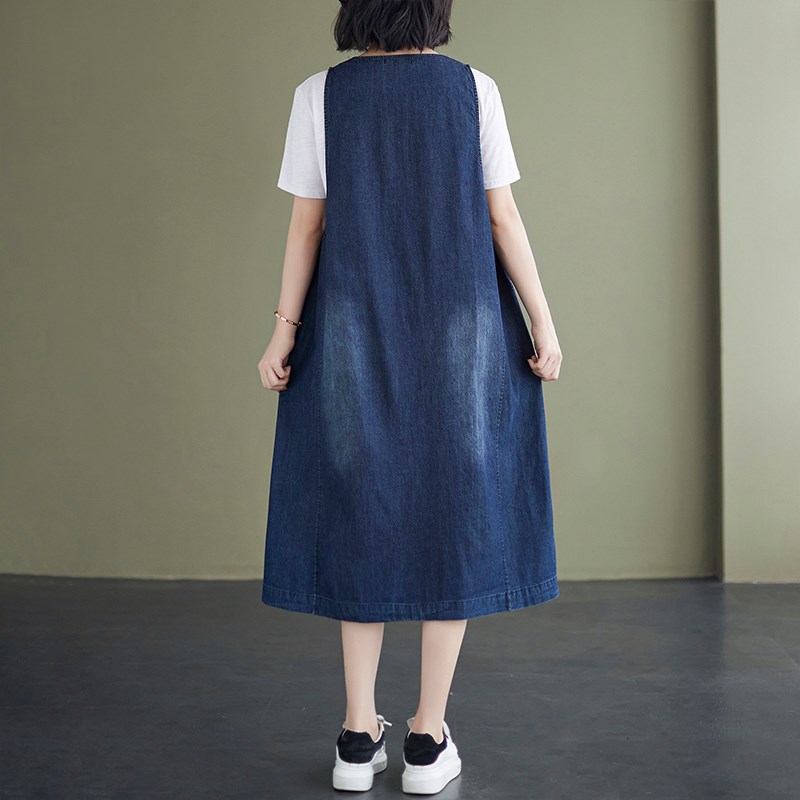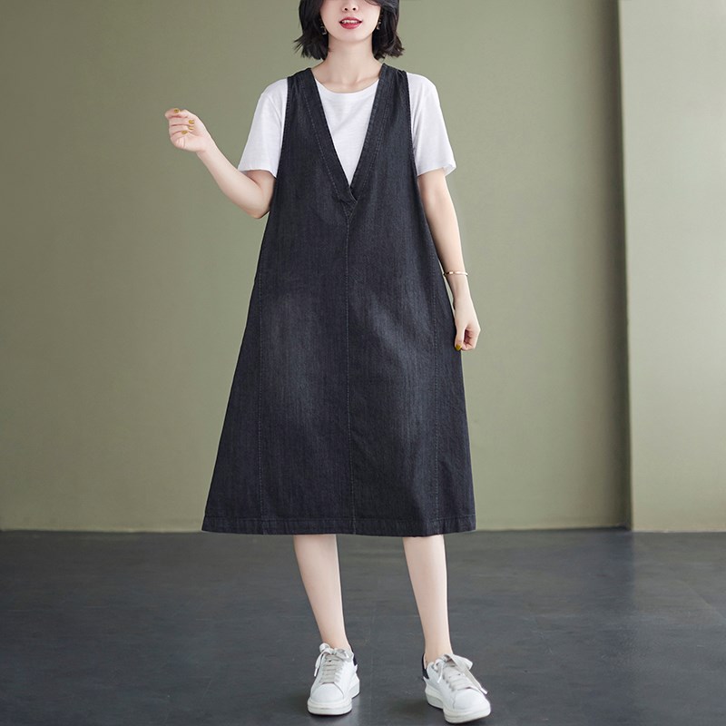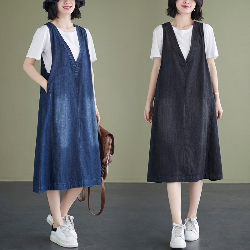 2025夏装牛仔显瘦背心裙休闲宽松大码中长款薄款V领无袖连衣裙女