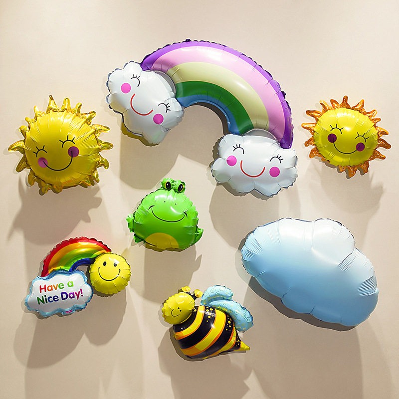 生日卡通动物太阳云朵彩虹蜜蜂装饰铝膜儿童场景布置老虎狮子气球