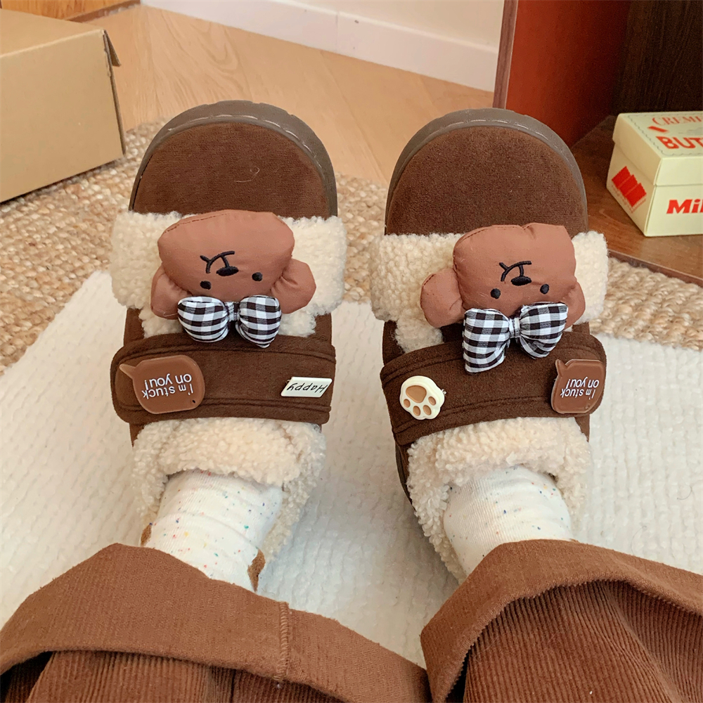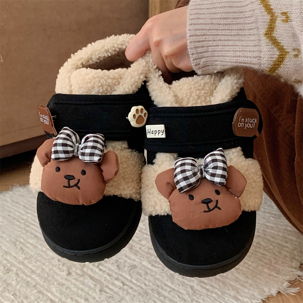 细细条 加绒休闲冬季拼色豆豆鞋少女心蝴蝶结小熊百搭平底棉鞋女