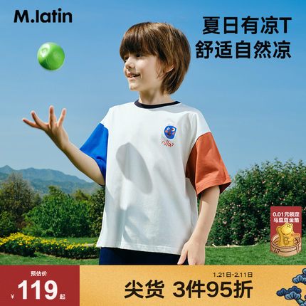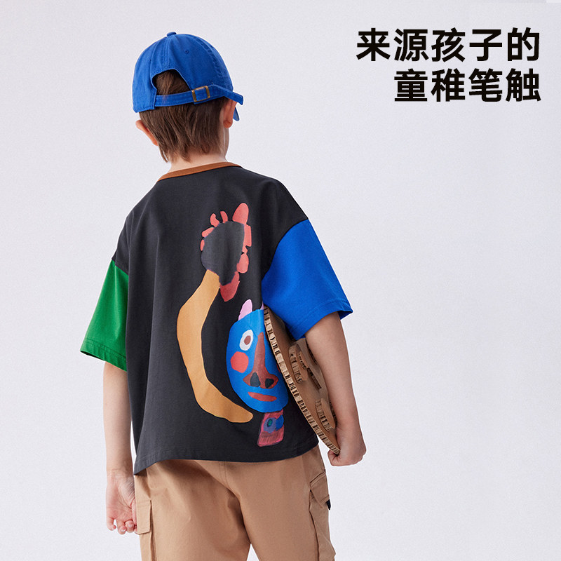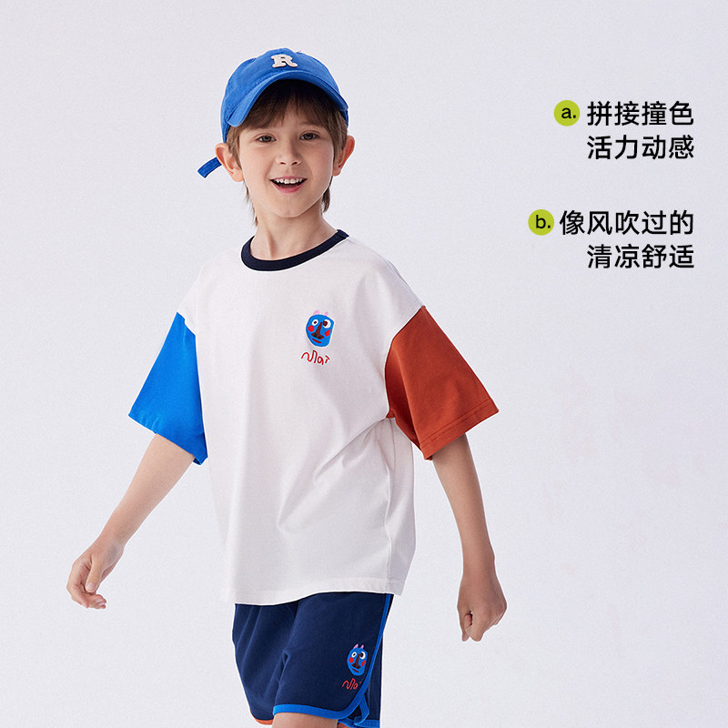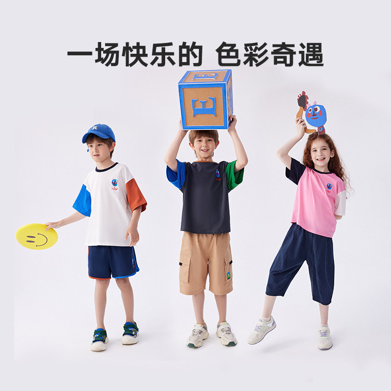 马拉丁童装儿童T恤夏装新款男童女童大童撞色设计短袖T恤