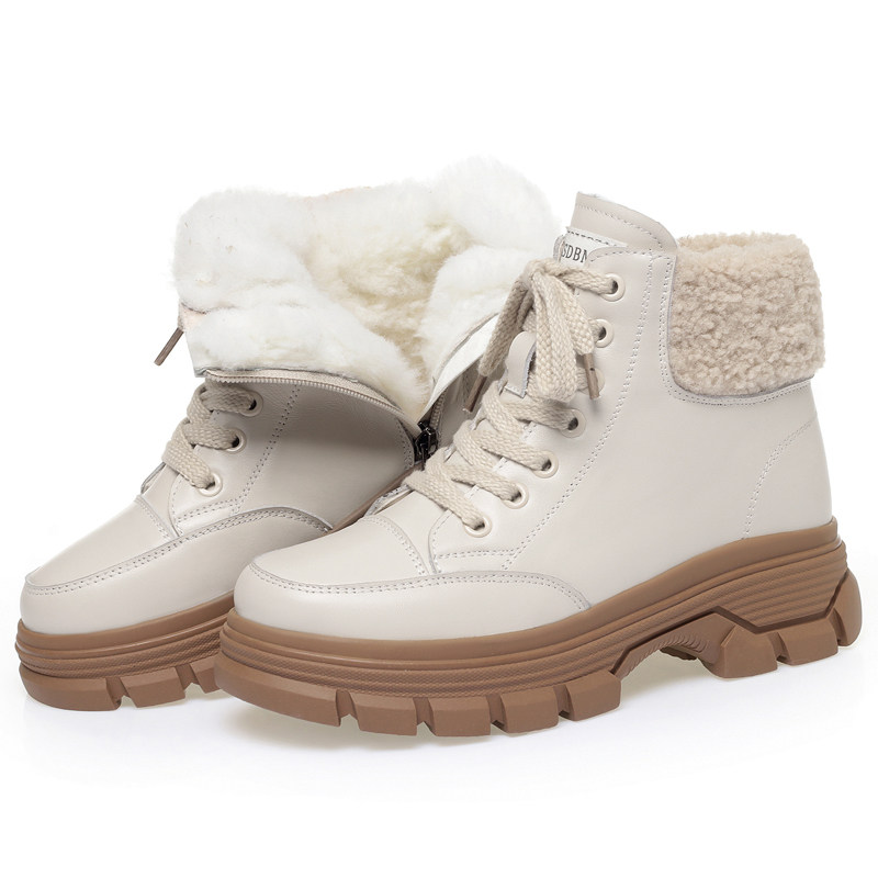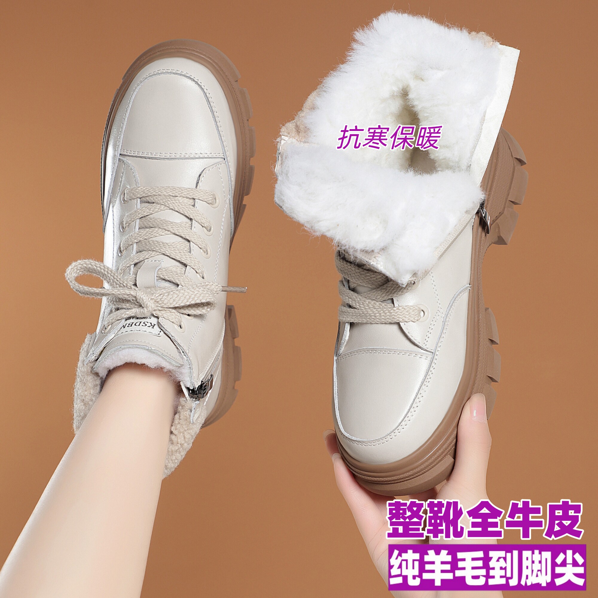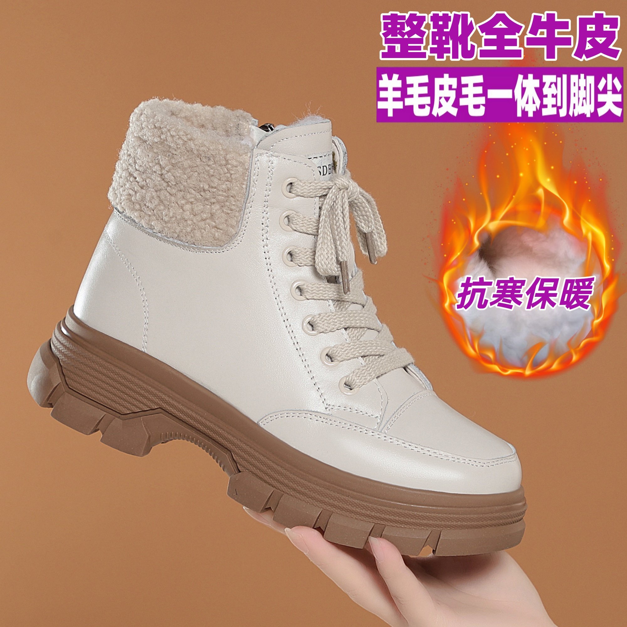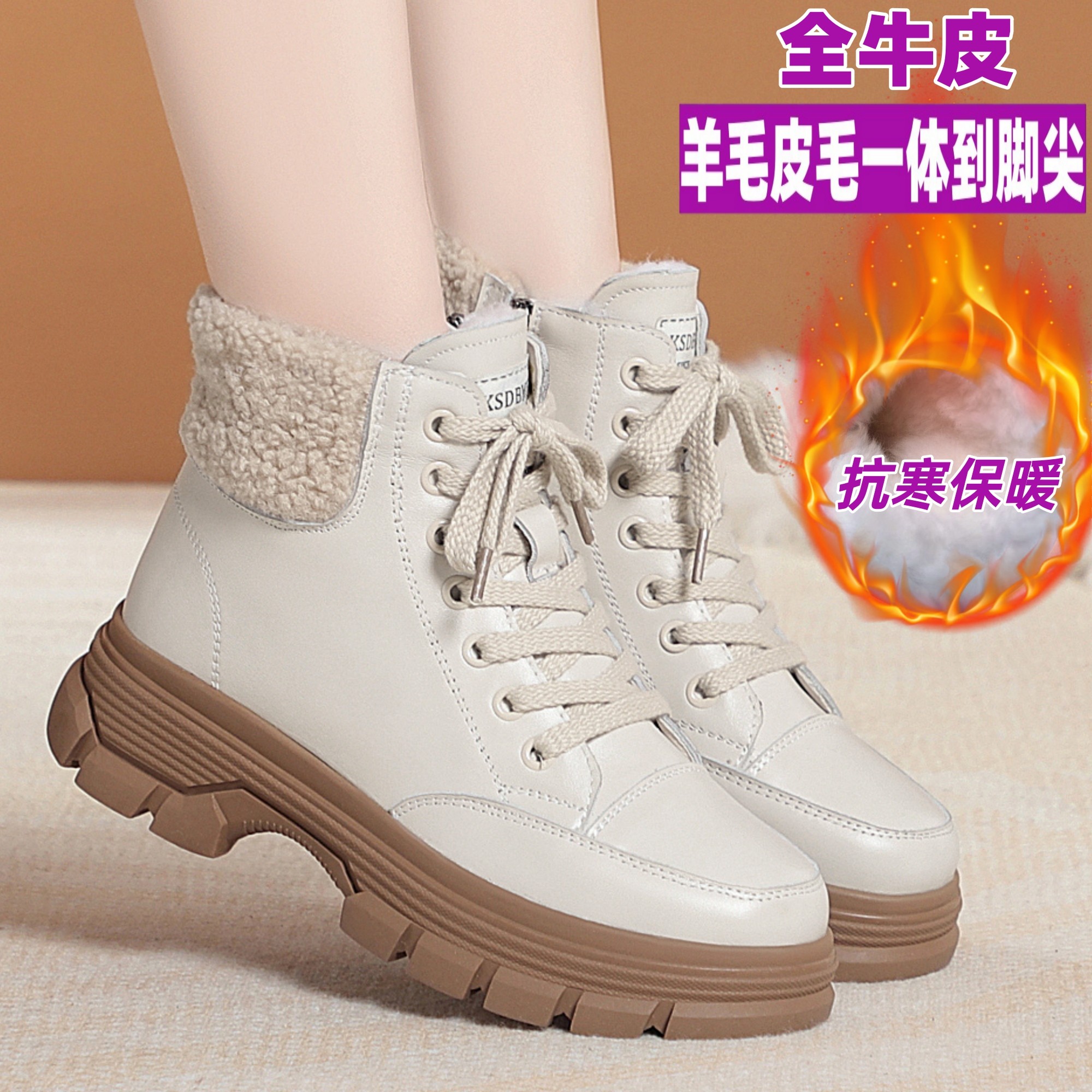 女士马丁靴女款冬季加绒女鞋羊毛短靴真皮棉鞋厚底皮毛一体雪地靴