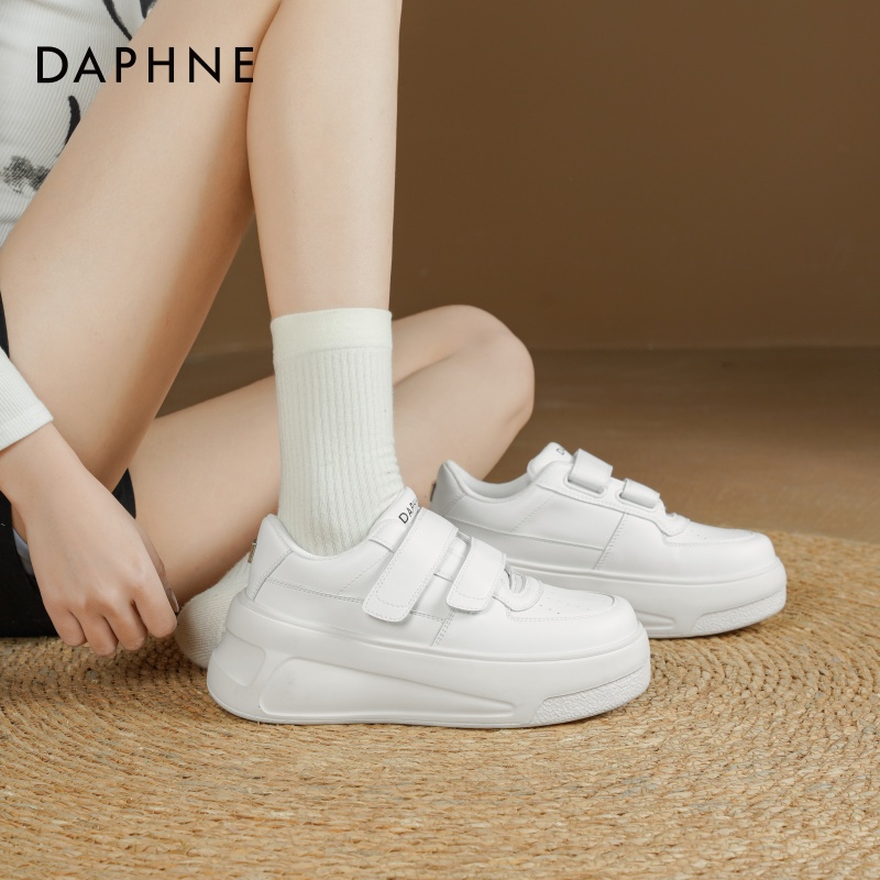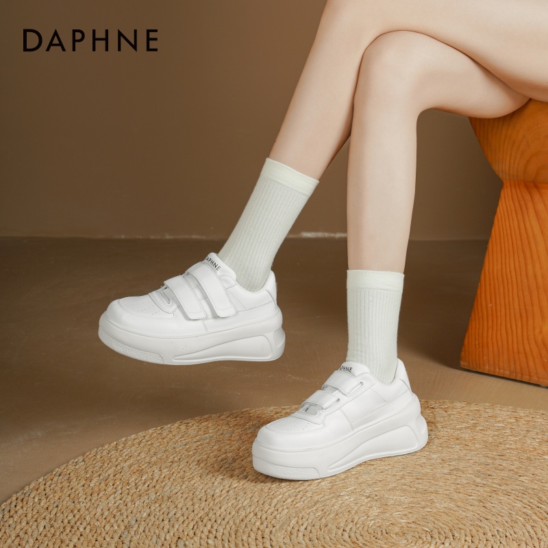 达芙妮魔术贴厚底增高小白鞋女2025新款秋冬保暖单鞋运动休闲板鞋