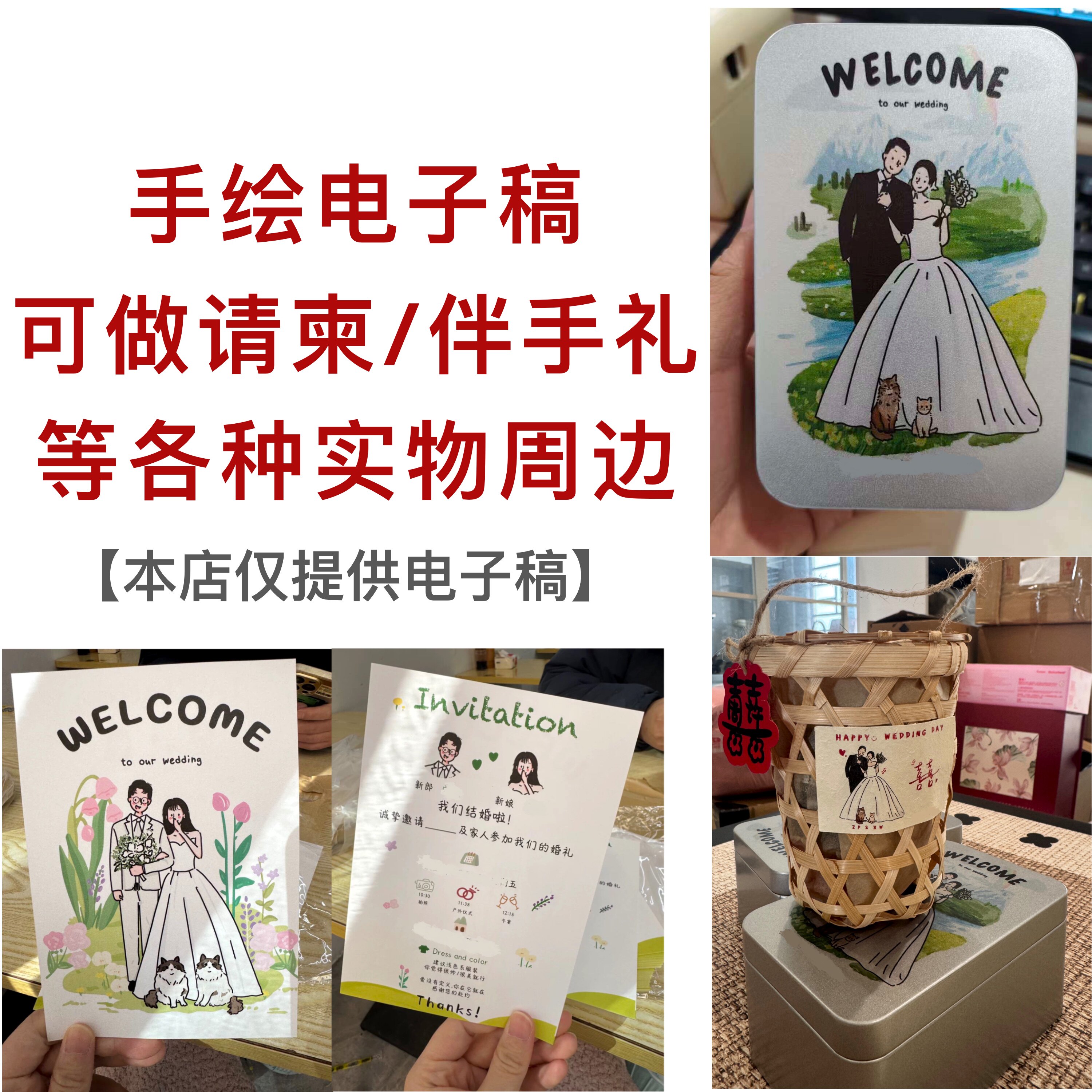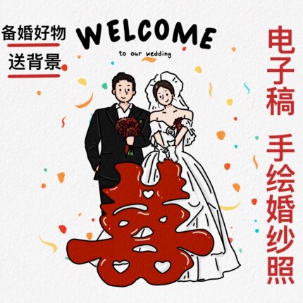 手绘婚纱照婚礼请柬插画
