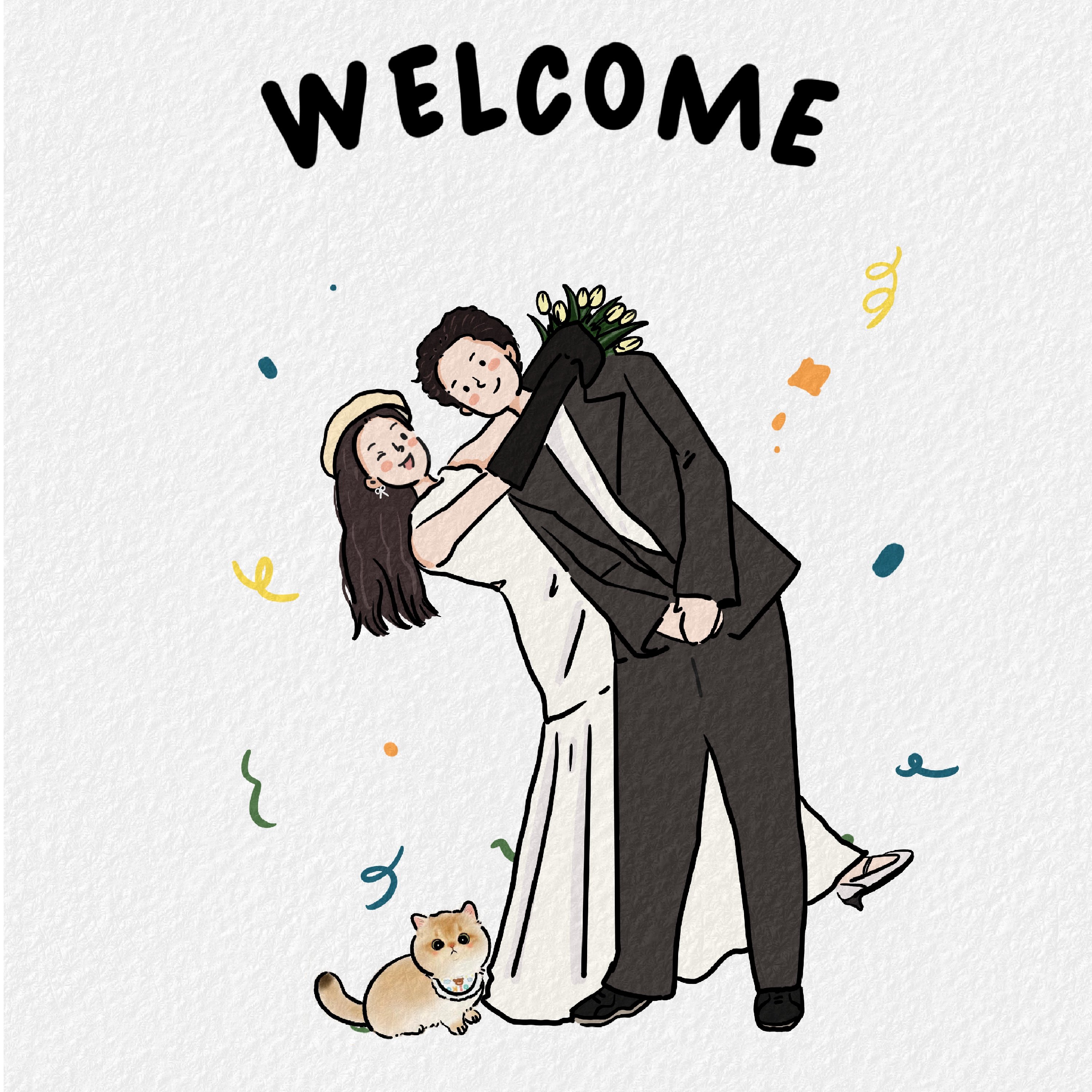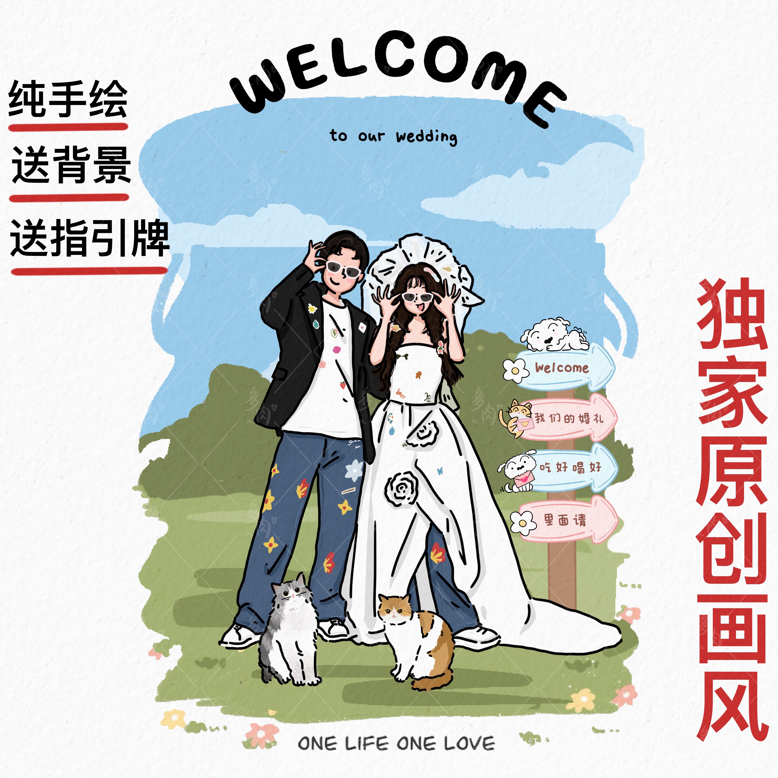 手绘婚纱照片头像婚礼卡通形象设计情侣头像定制q版请柬插画