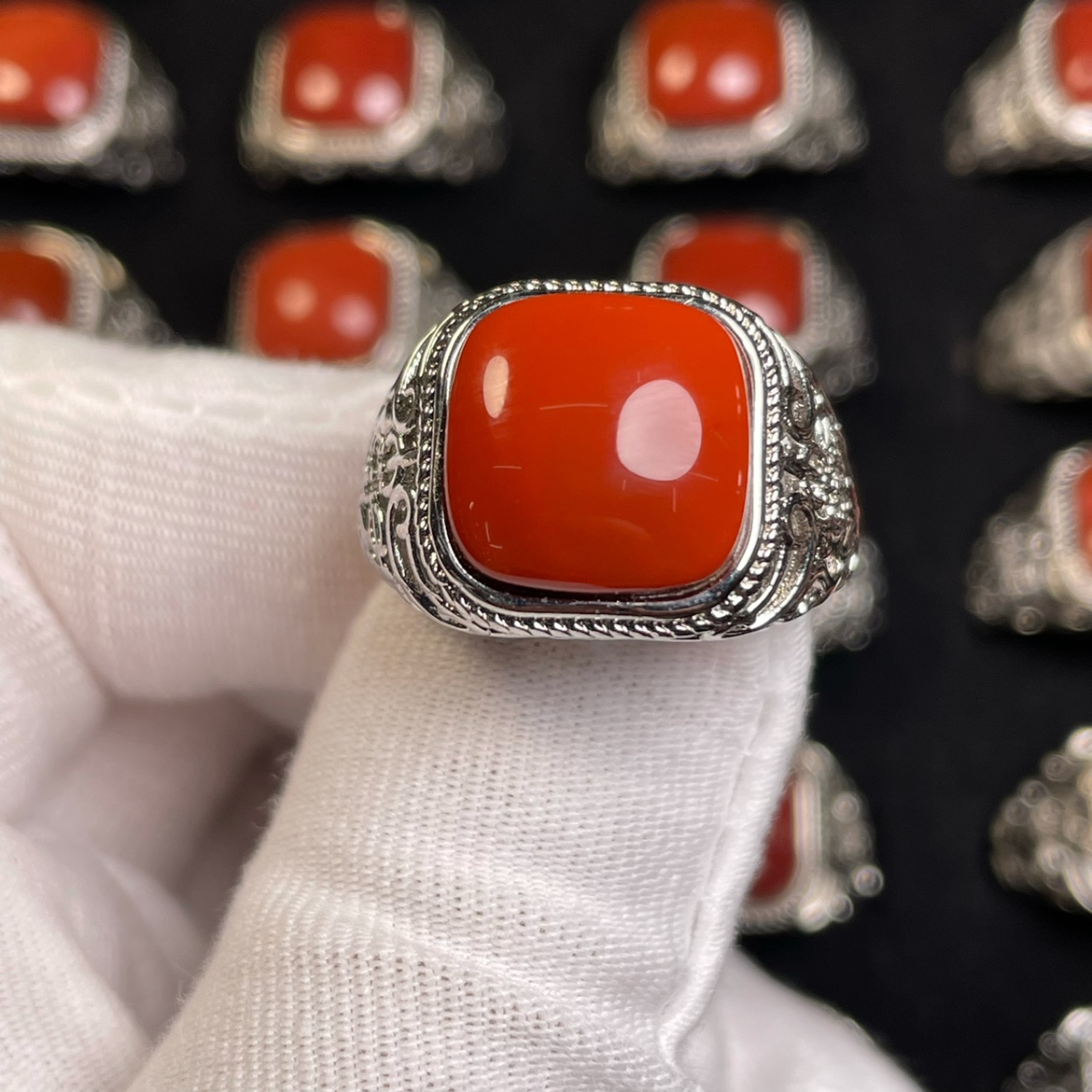 天然满肉南红玛瑙戒指男士马鞍银戒面时尚大气宝石开口可调节指环