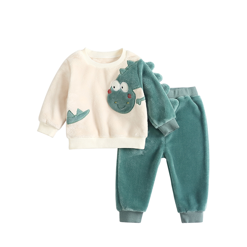 齐齐熊宝宝珊瑚绒睡衣恐龙男宝宝儿童加厚套装男童保暖家居服秋冬