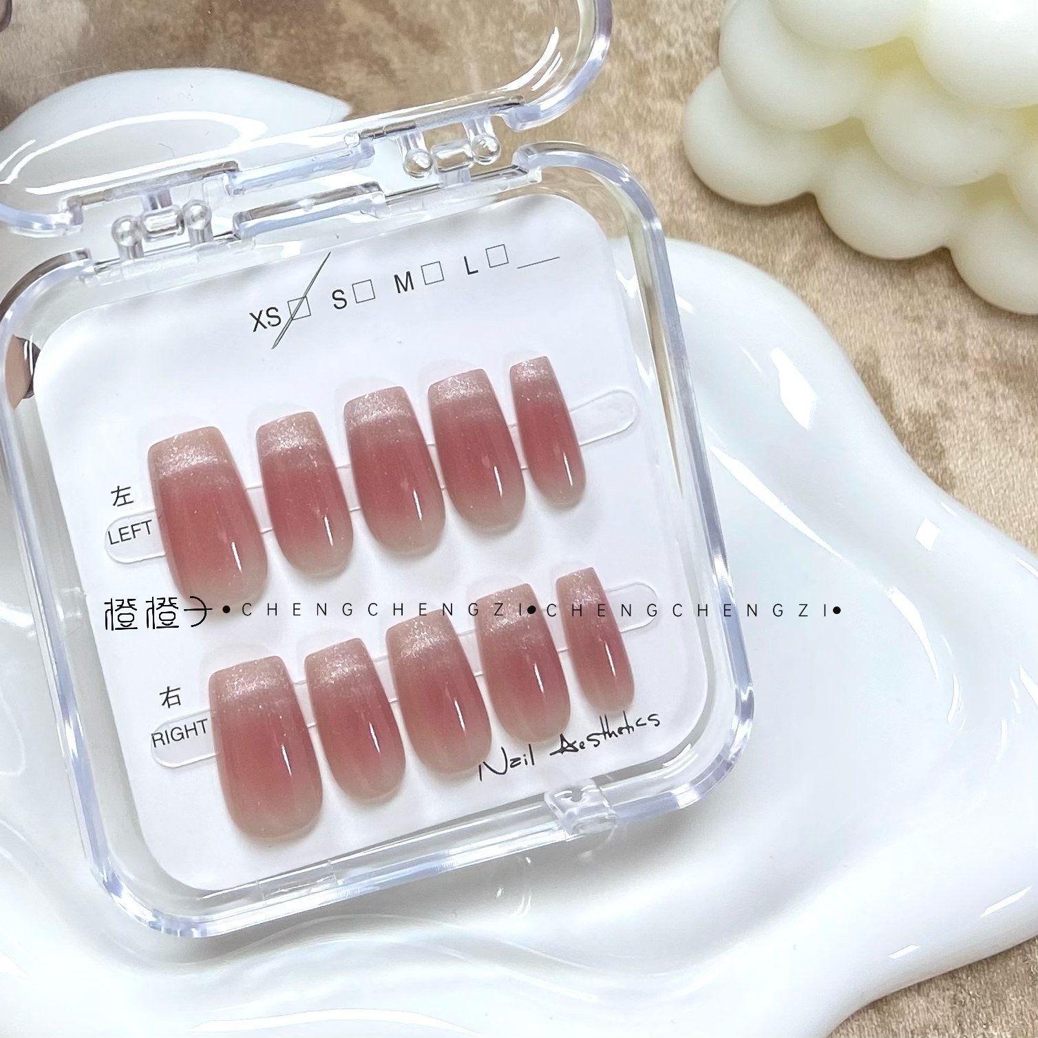 微笑猫眼腮红美甲猫眼手工穿戴甲