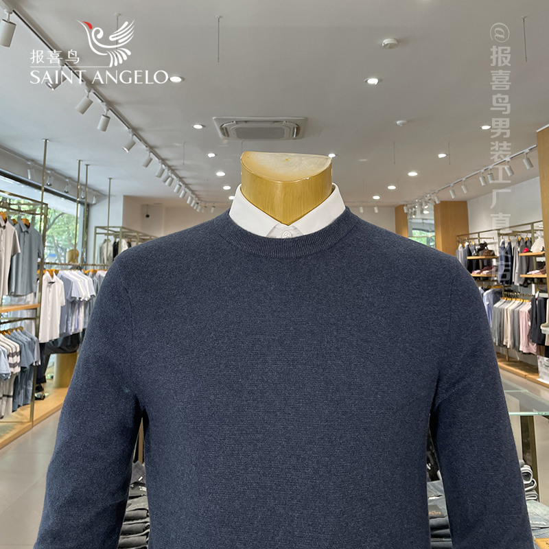 羊绒衫男报喜鸟圆领毛衣针织衫羊毛衫100%山羊绒男士冬季上衣厚款