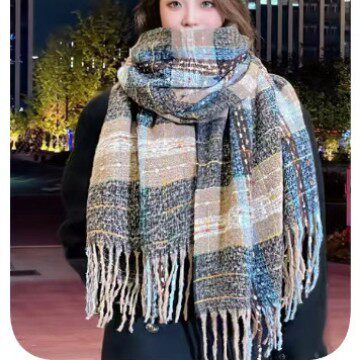 2025冬季格纹围巾女韩系百搭加厚保暖披肩两用秋冬流行时尚多色选
