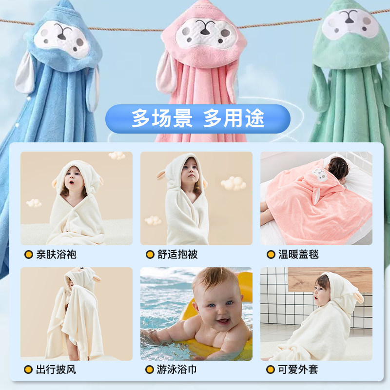 婴儿童浴巾斗篷浴袍新生洗脸毛巾被盖毯子可穿式带帽游泳速干裹巾