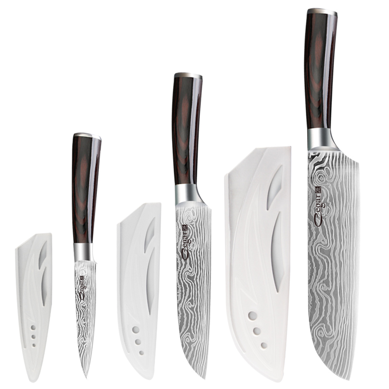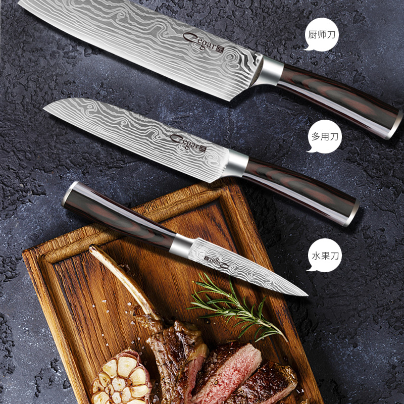 匠牌大马士革纹水果刀多用小刀瓜果刀削皮刀厨房家用带刀套厨师刀