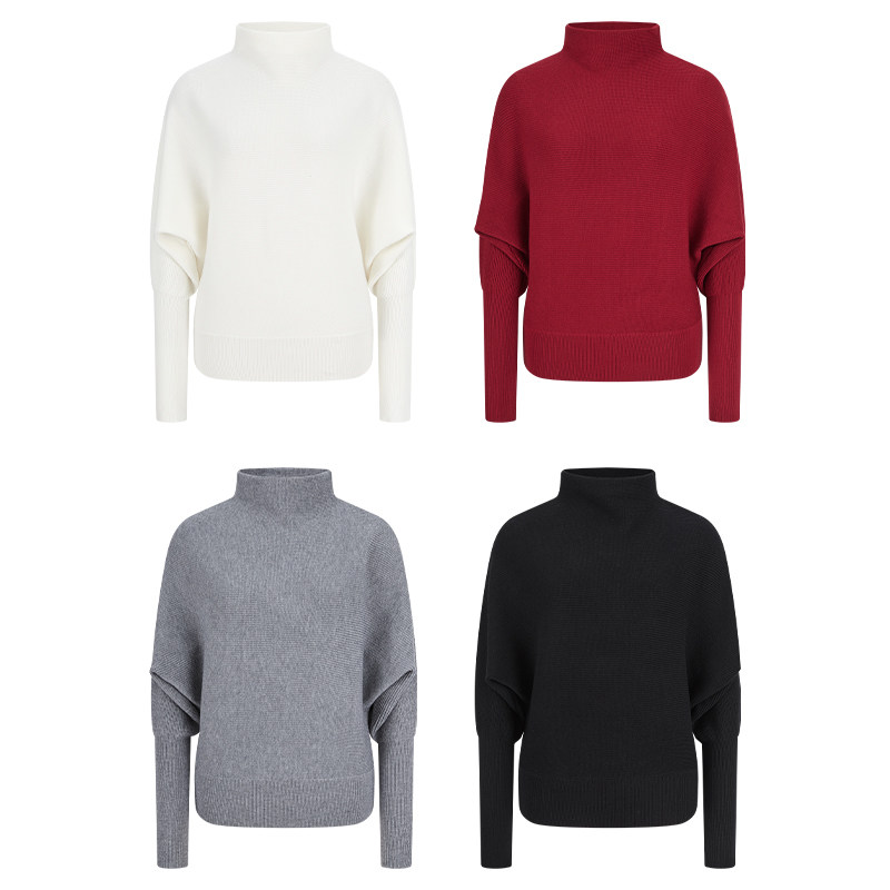 MosesQueen魔西女王灰色高领堆堆领针织衫秋冬显瘦内搭毛衣长袖