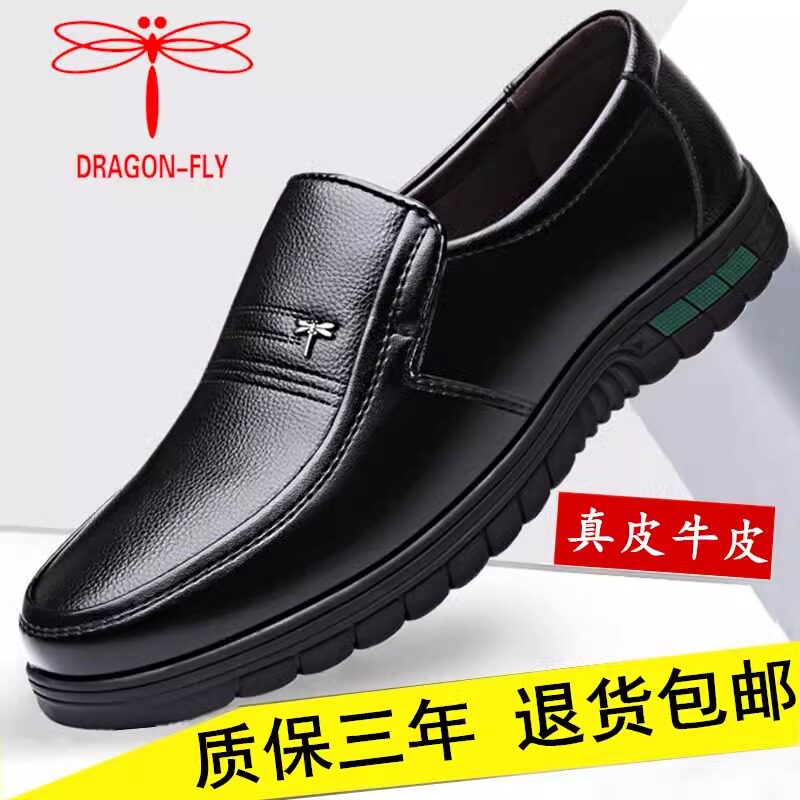 蜻蜓牌皮鞋男2025新款真皮男士软底牛皮厚底中老年防滑耐磨爸爸鞋