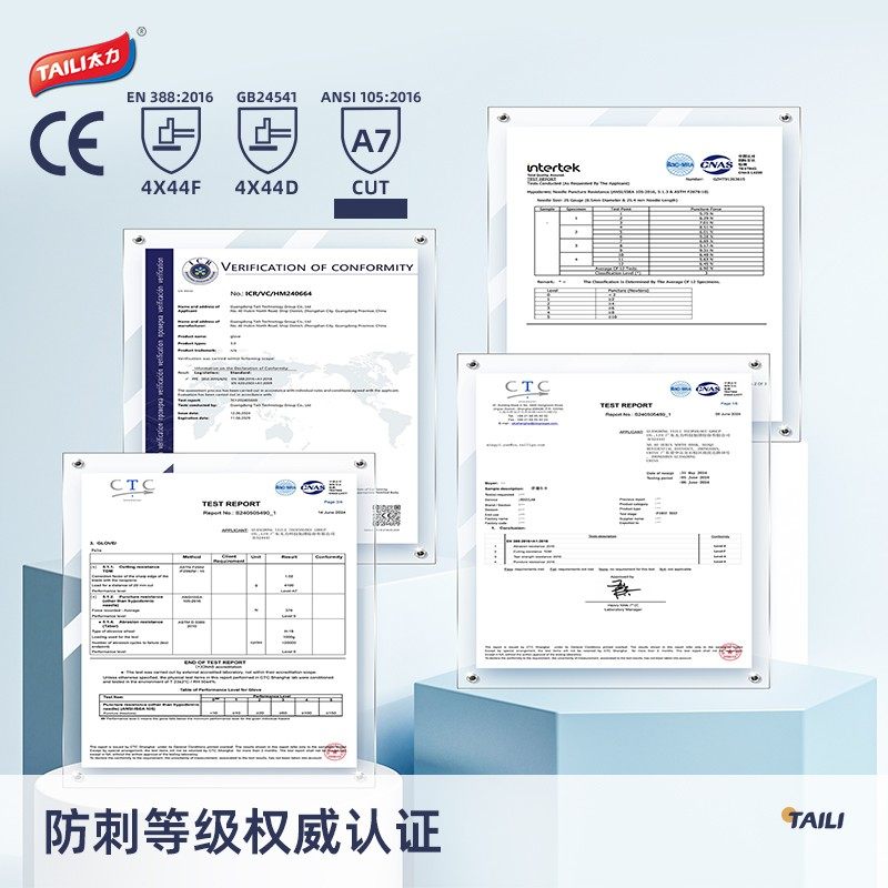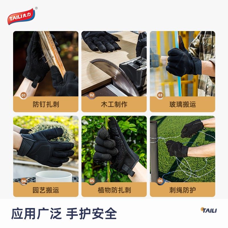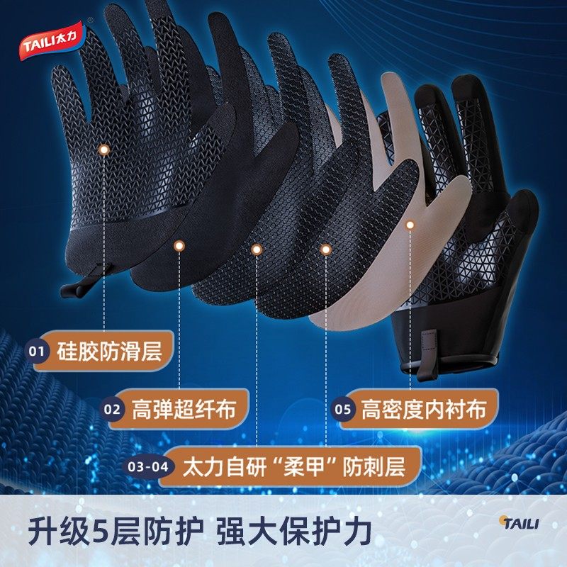 TAILI/太力防刺割手套抗针刺耐切割触屏手套户外防护分指耐磨手套
