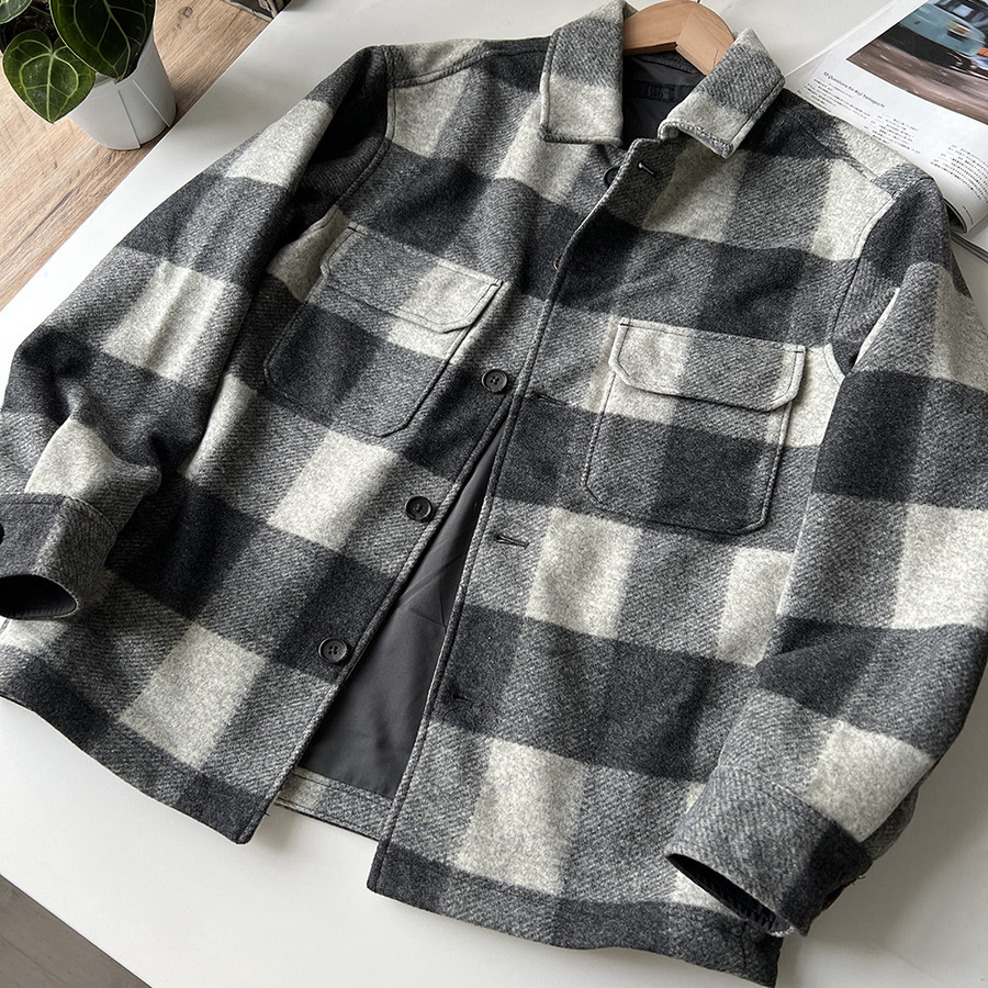 北野U家!男装/女装廓形衬衫式茄克/宽松休闲格纹夹克外套