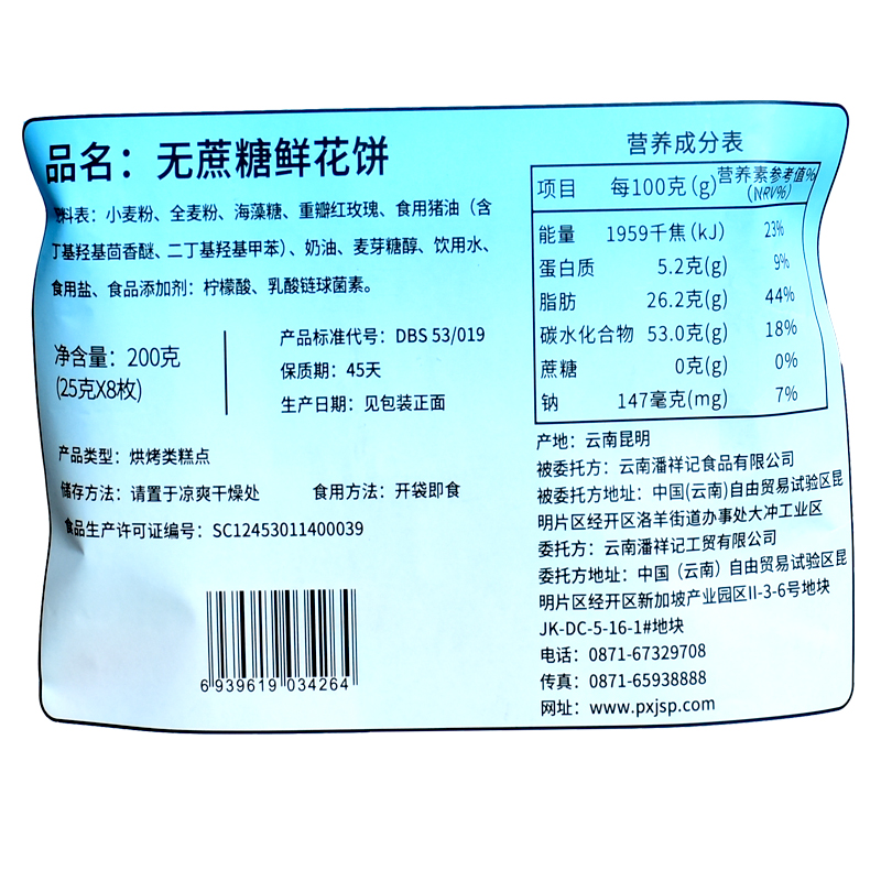 潘祥记无蔗糖鲜花饼200g云南旅游伴手礼食品独立玫瑰鲜花饼