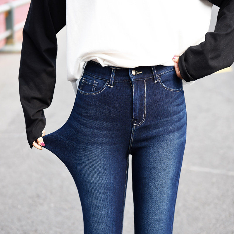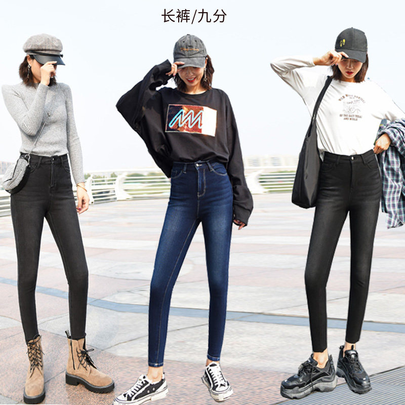 高弹软牛仔裤女高腰春秋款韩版黑色显瘦弹力修身九分紧身小脚长裤